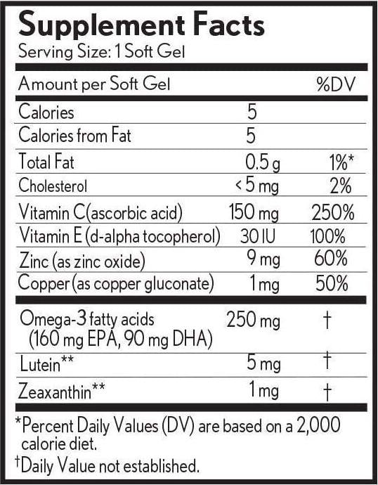 Size:150 Softgels Ocuvite provides what your multivitamin may be missing. Ocuvite Adult 50+ is packed with vital eye nutrients and is focused on one thing: helping protect your eye health. Your multivitamin can fall short when it comes to your eyes, because most leading brands contain little or no Lutein, Zeaxanthin or Omega-3s vital nutrients important for your eye health.