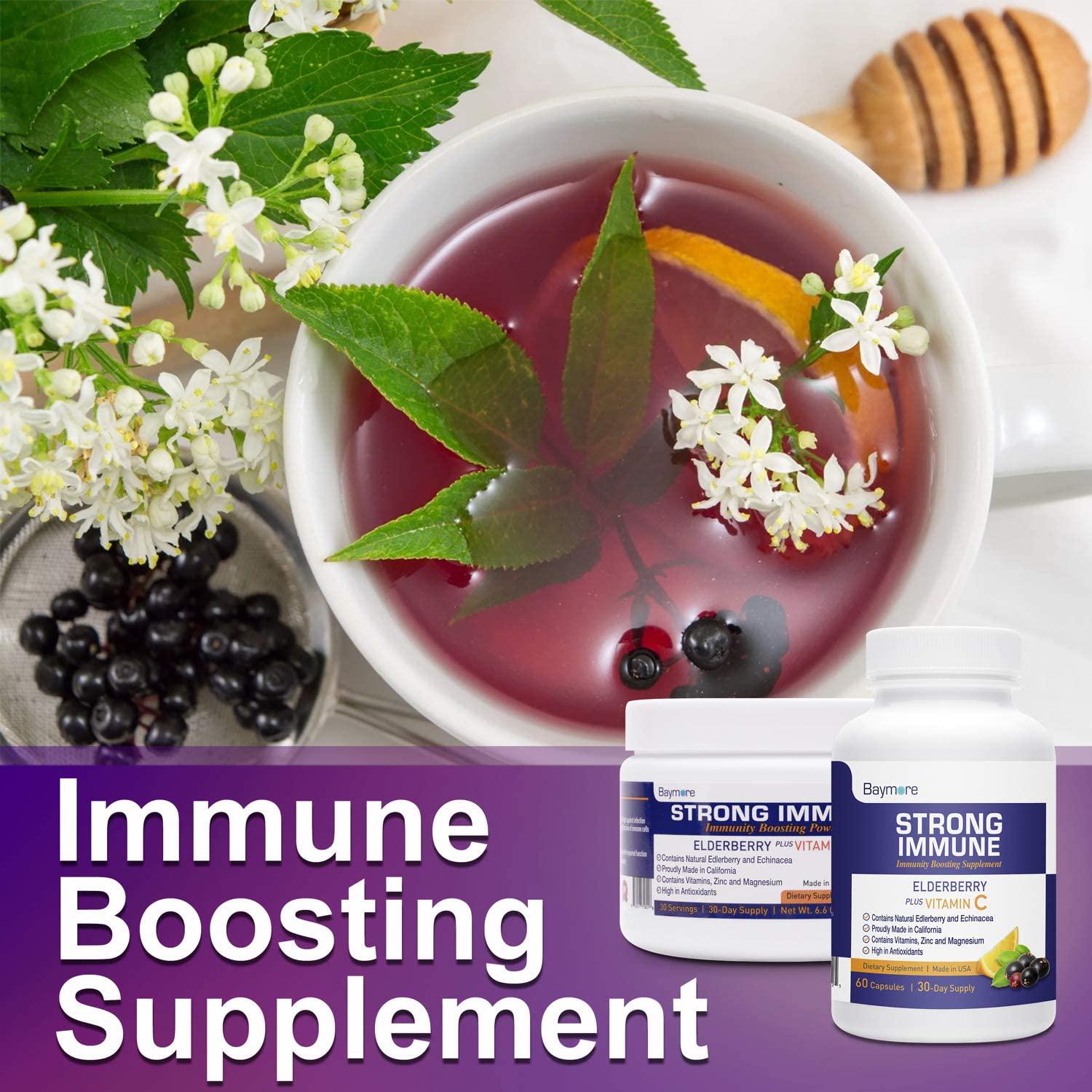 Baymore Immunity Boost Supplement with Elderberry, Vitamin C, Echinacea and Zinc - Once Daily Multi-System Support- 60 Capsules