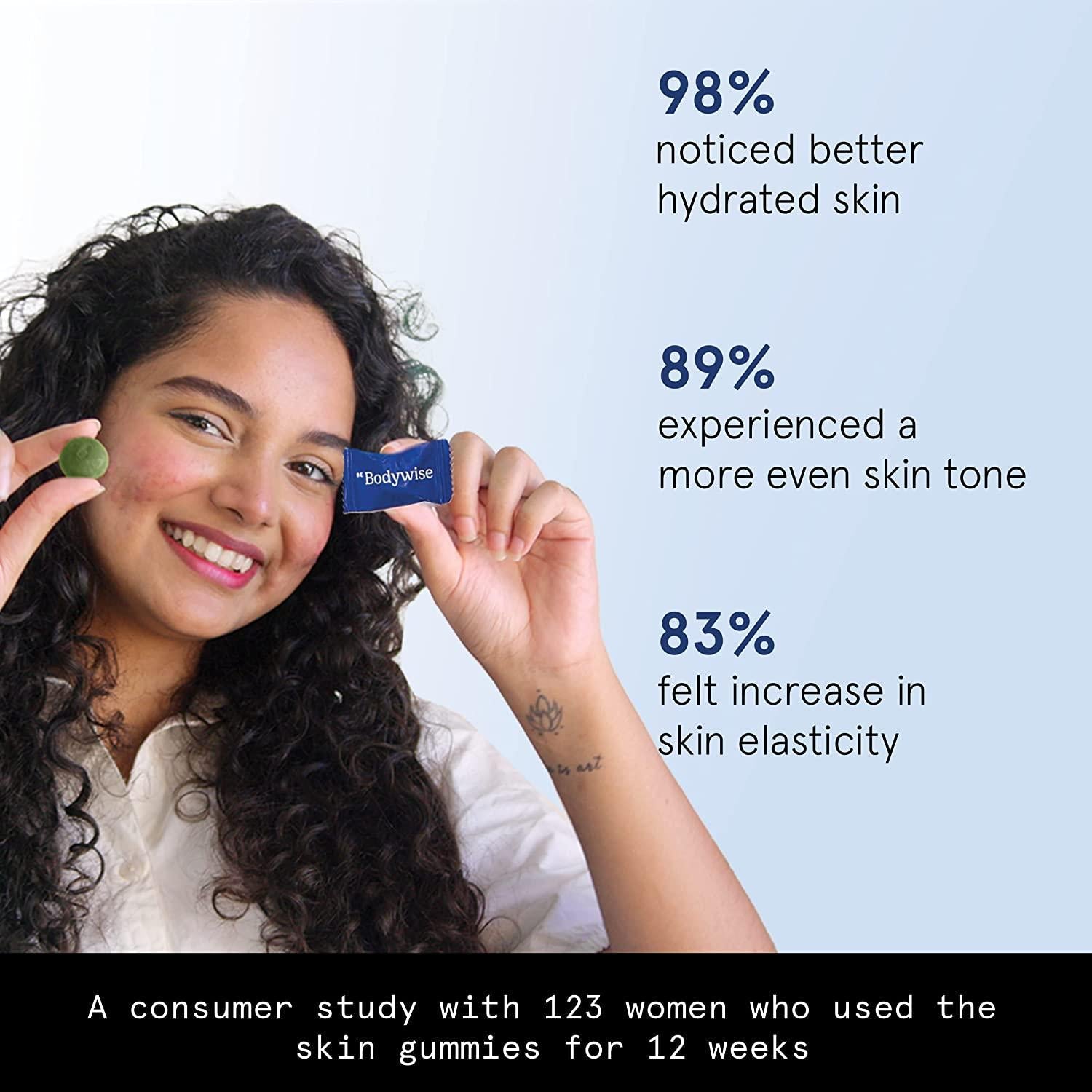 Be Bodywise Skin Gummies with Vitamin C, Hyaluronic Acid, Vitamin E, Curcumin | Skin Gummies | Vegan Gummies, Gluten Free | Skin Vitamins | No Sugar Added | 1 Month Pack | 60 Gummies