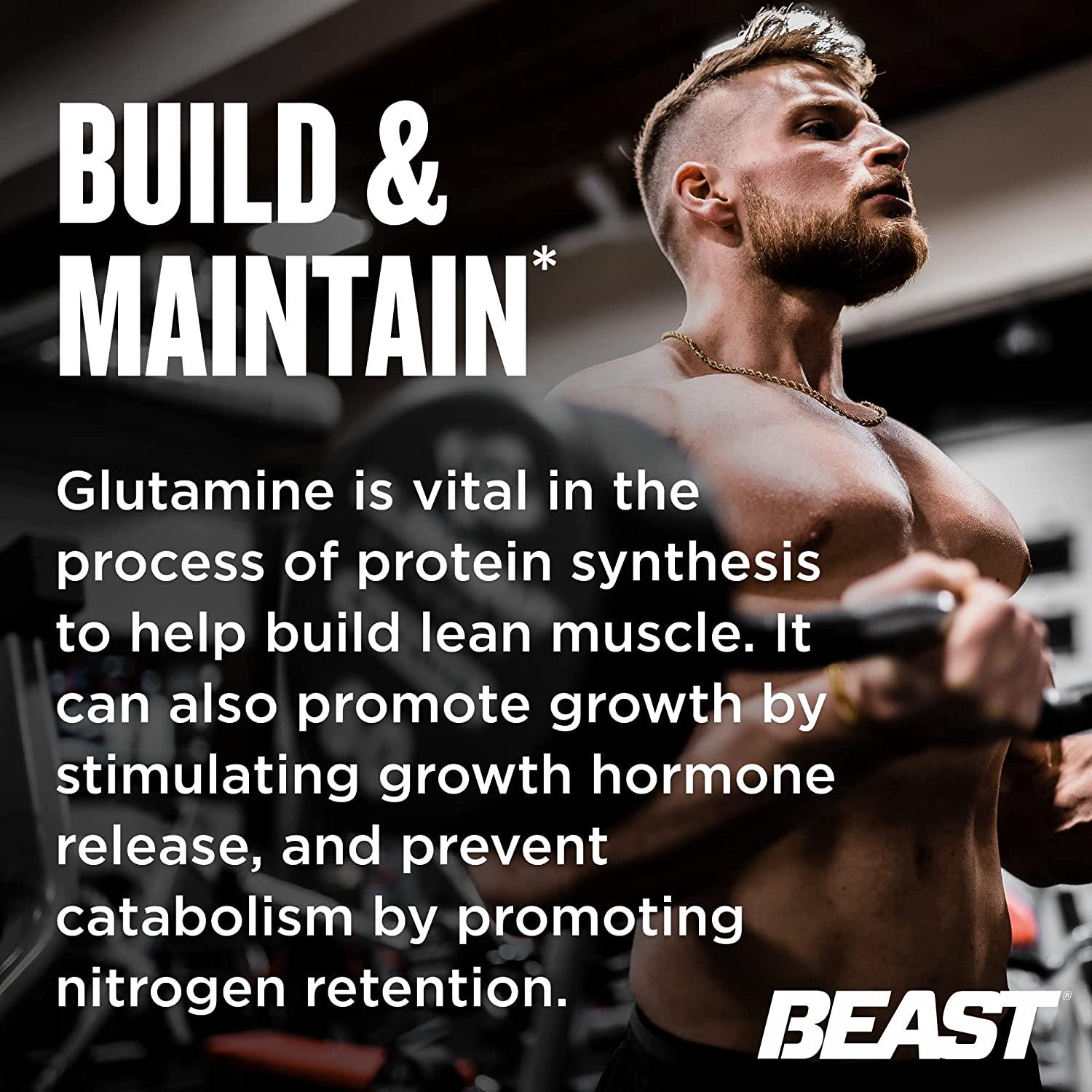 - LONG-TERM GAINS - Replenishing your body with Beast Glutamine can enhance performance for long-term gains, helping you maintain muscle size, strength & power.