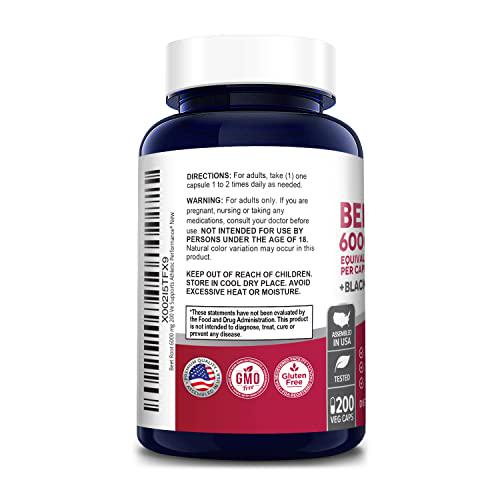 Beet Root 6000 mg 200 Veggie caps (Vegan, Non-GMO, Extract 20:1 & Gluten-Free) with Black Pepper - Supports Healthy Blood Pressure, Supports Performance and Energy Levels* *
