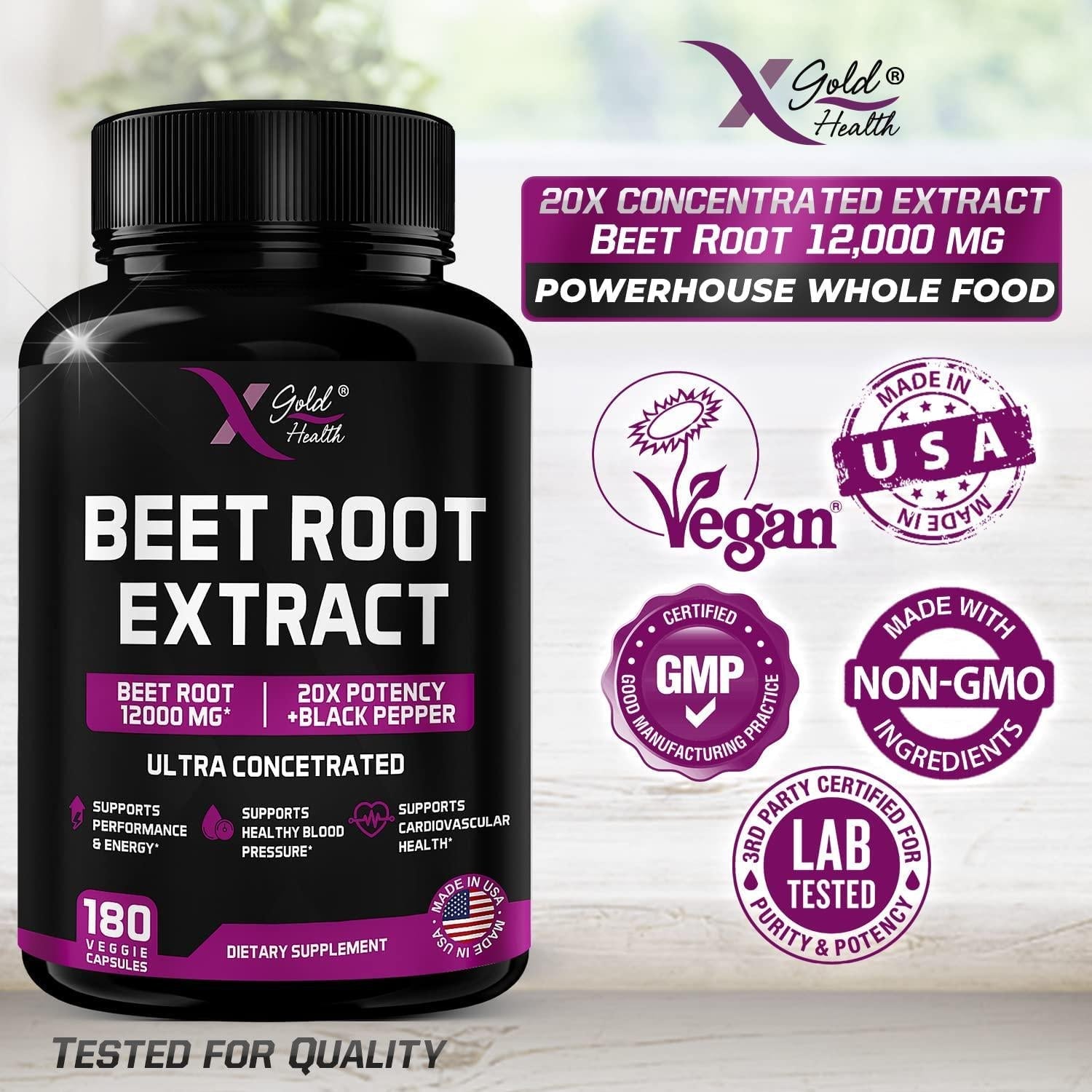 Beet Root Extract Capsules - 12000mg 20x Concentrated Beet Root Capsules Supplement w/ Black Pepper - High Nitrates - Natural Nitric Oxide Booster - Highly Concentrated and Bioavailable -180 Veggie Caps Beet Root Extract Capsules - 12000mg 20x Concentrated Beet Root Capsules Supplement w/ Black Pepper - High Nitrates - Natural Nitric Oxide Booster - Highly Concentrated & Bioavailable -180 Veggie Caps