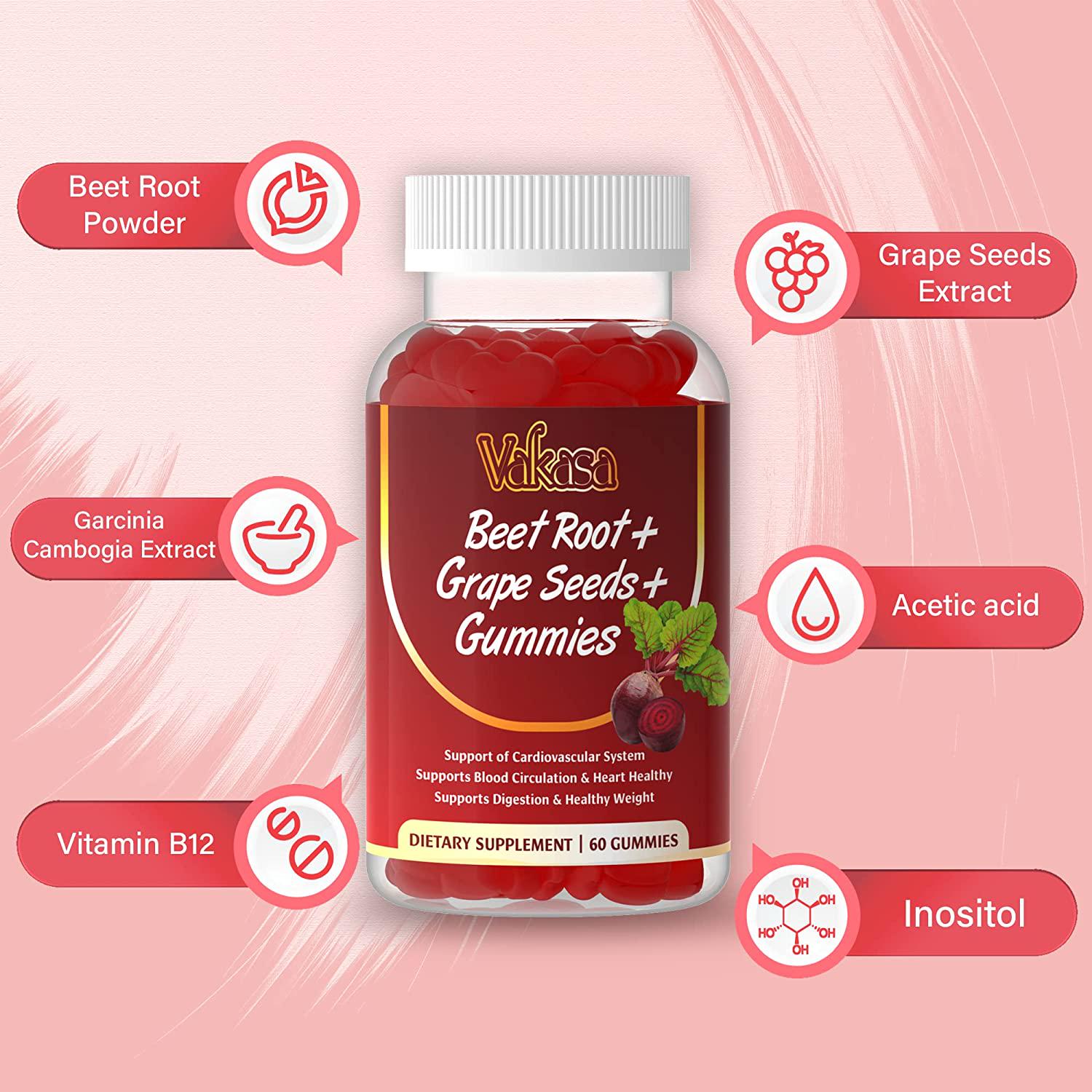 Beet Root Gummies , Grape Seed Extract and Vitamin B12 | Beet Root Supplements, Natural Flavor Vitamin Supplements | Supports Immune Health for Adults Men Women,Vegan, Non-GMO 60 Gummies(1)
