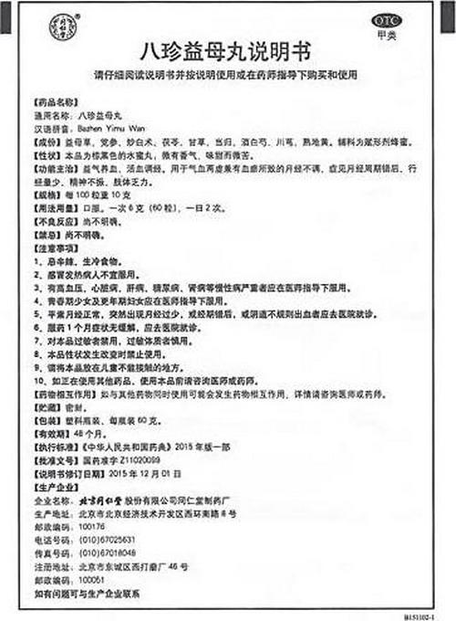 60g, ba zhen yi mu wan, beijing tong ren tang, tablets, traditional chinese medicine