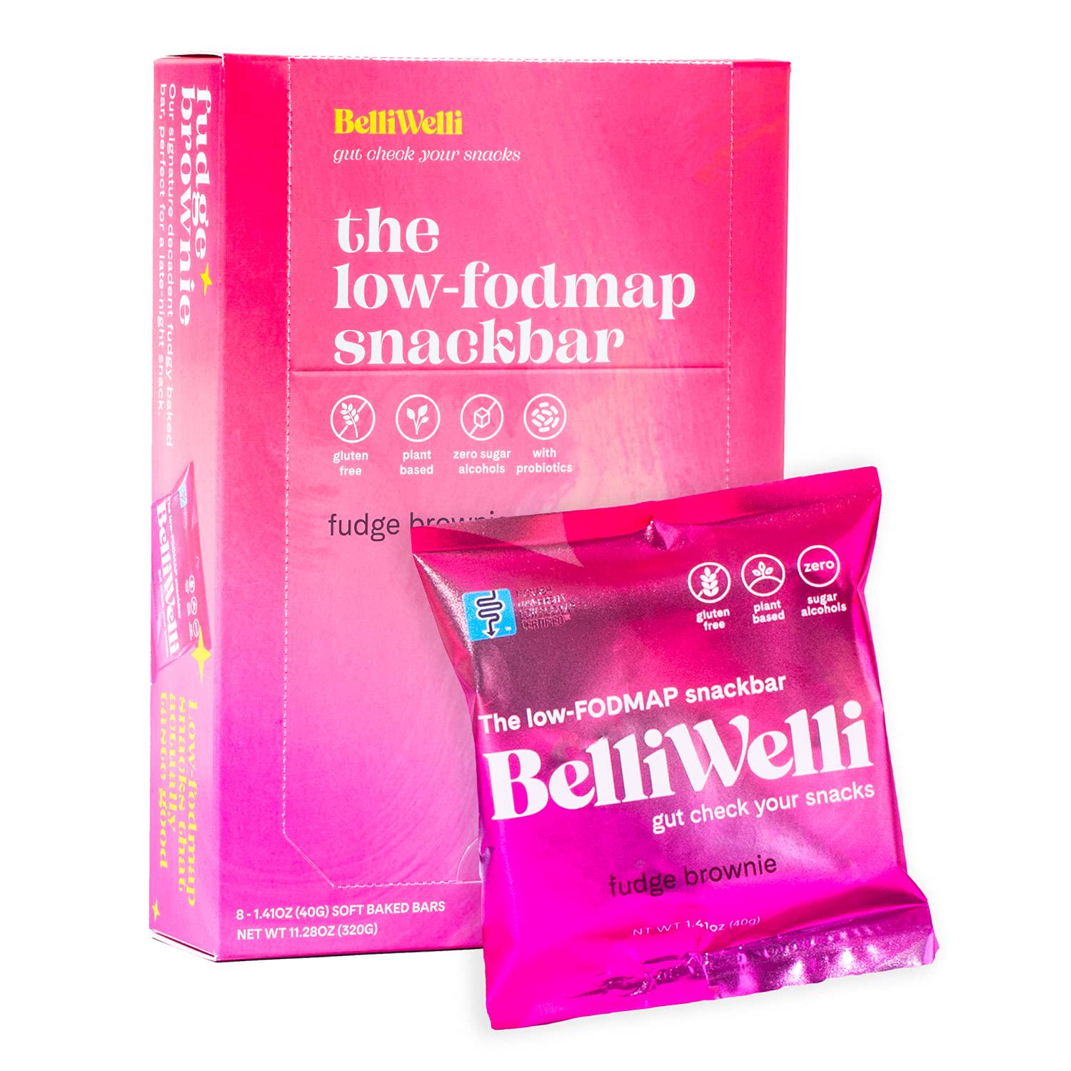 BelliWelli Plant-Based Fudge Brownie Snack Bars (8-Pack) - Low FODMAP Certified, Gluten Free, Dairy Free, Vegan, No Sugar Alcohols & 100% Gut Friendly! | Contains Probiotics