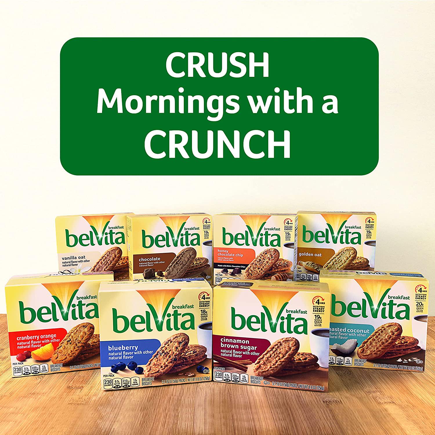 Lightly sweet and crunchy, belVita Chocolate Breakfast Biscuits are made with high-quality and wholesome ingredients, delicious whole grains. Specially baked to release up to 4 hours of nutritious steady energy that fuels you all morning long and portioned in convenient individual packs, these chocolate flavored breakfast cookies are a delicious instant breakfast you can enjoy no matter what the morning brings. Each 50 gram serving of chocolate biscuits is made with 19 grams of whole grain, 3 grams of fiber and B vitamins. A simple addition to your morning, this wholesome breakfast food contains no high-fructose corn syrup and no artificial flavors or sweeteners. Each individual pack contains 4 breakfast bars for you to enjoy on the go, at the office, or at home with your morning coffee.