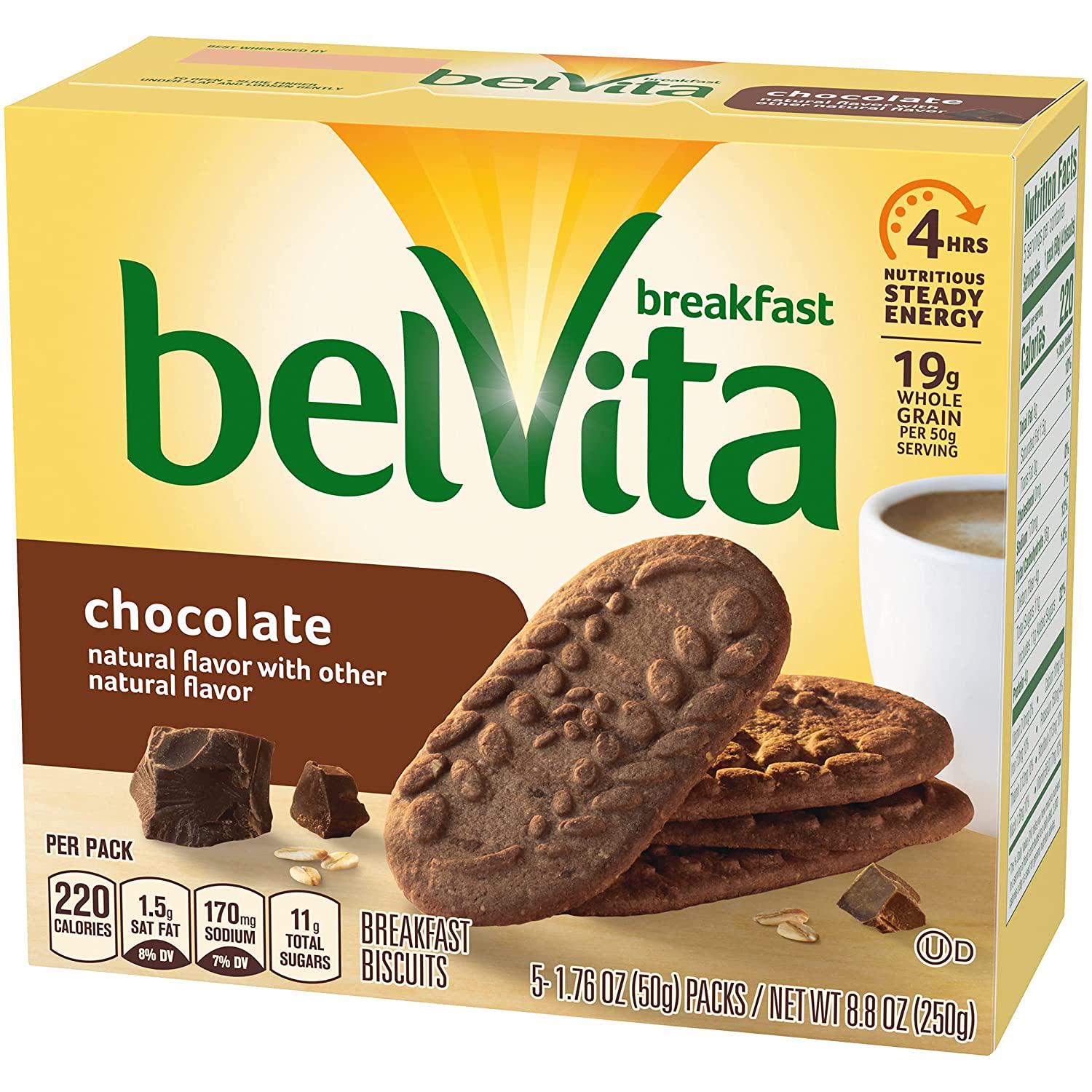 - One box with 5 packs (4 biscuits per pack) of belVita Chocolate Breakfast Biscuits