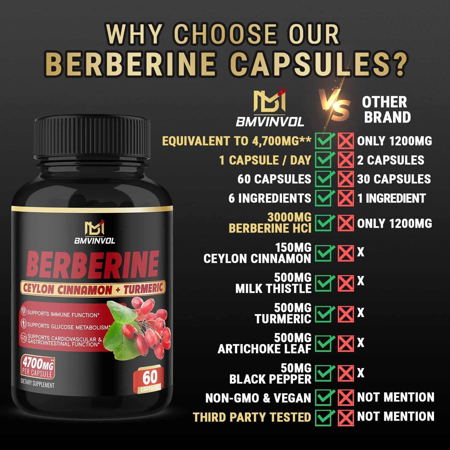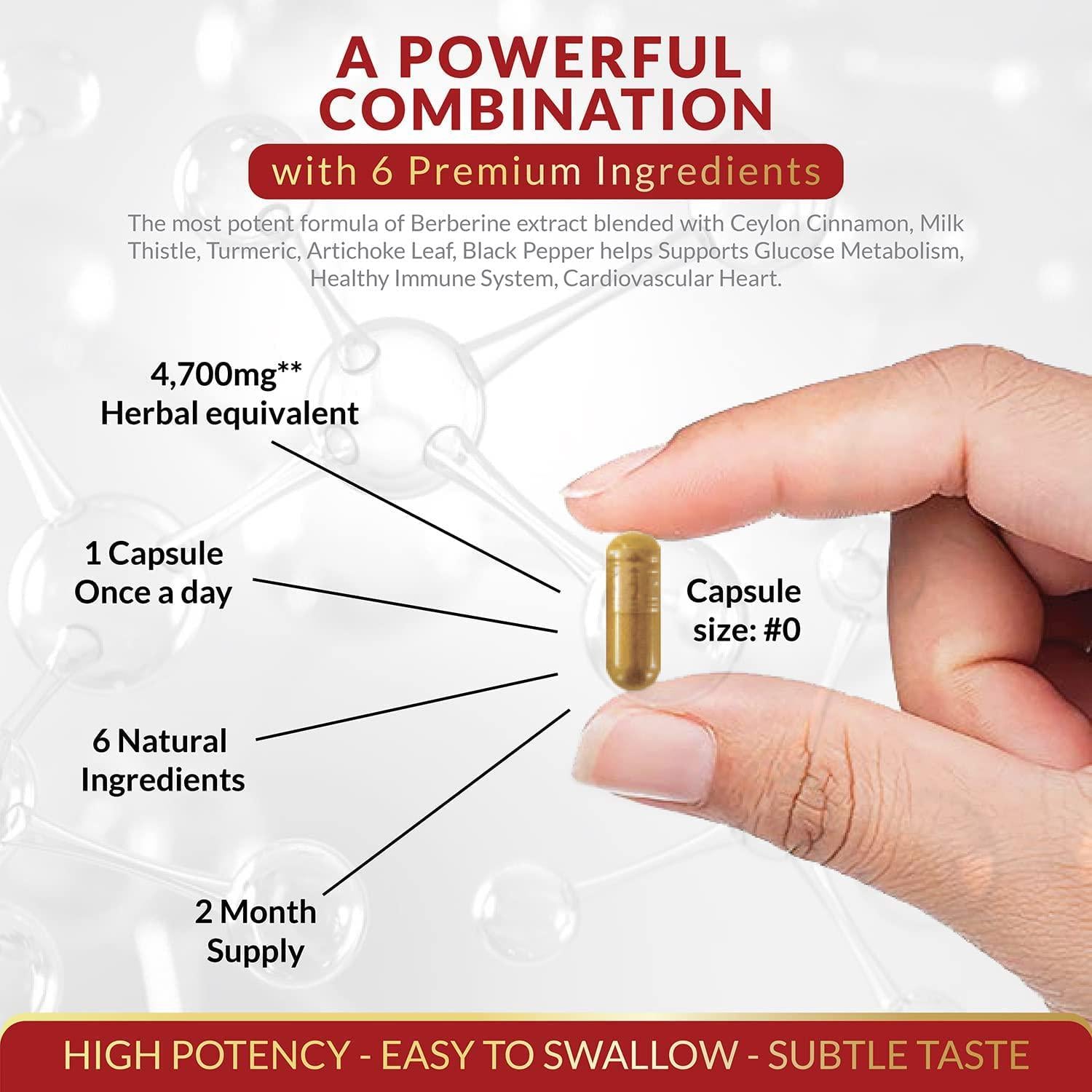 - Special Formula 4700mg Per Capsule: Organic berberine included Berberine, Ceylon, Milk Thistle, Turmeric, Artichoke Leaf, Black Pepper that are well-known for their support of promotes heart health, healthy liver function, high in antioxidants.