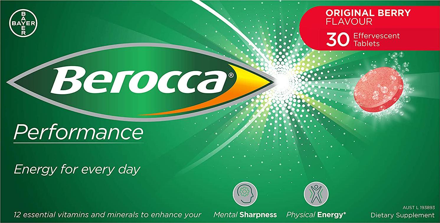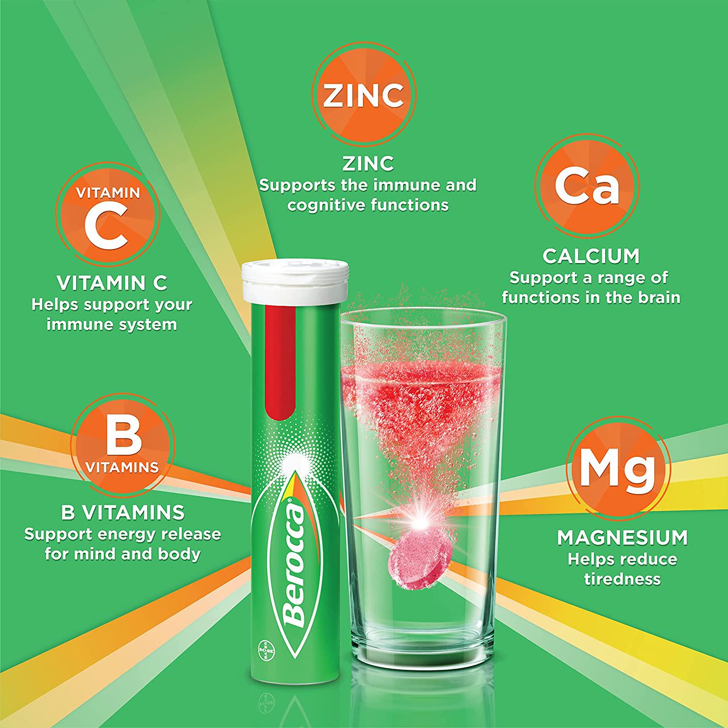berocca energy vitamin, effervescent tablets, high dose b vitamins, immunity support, original berry, physical energy