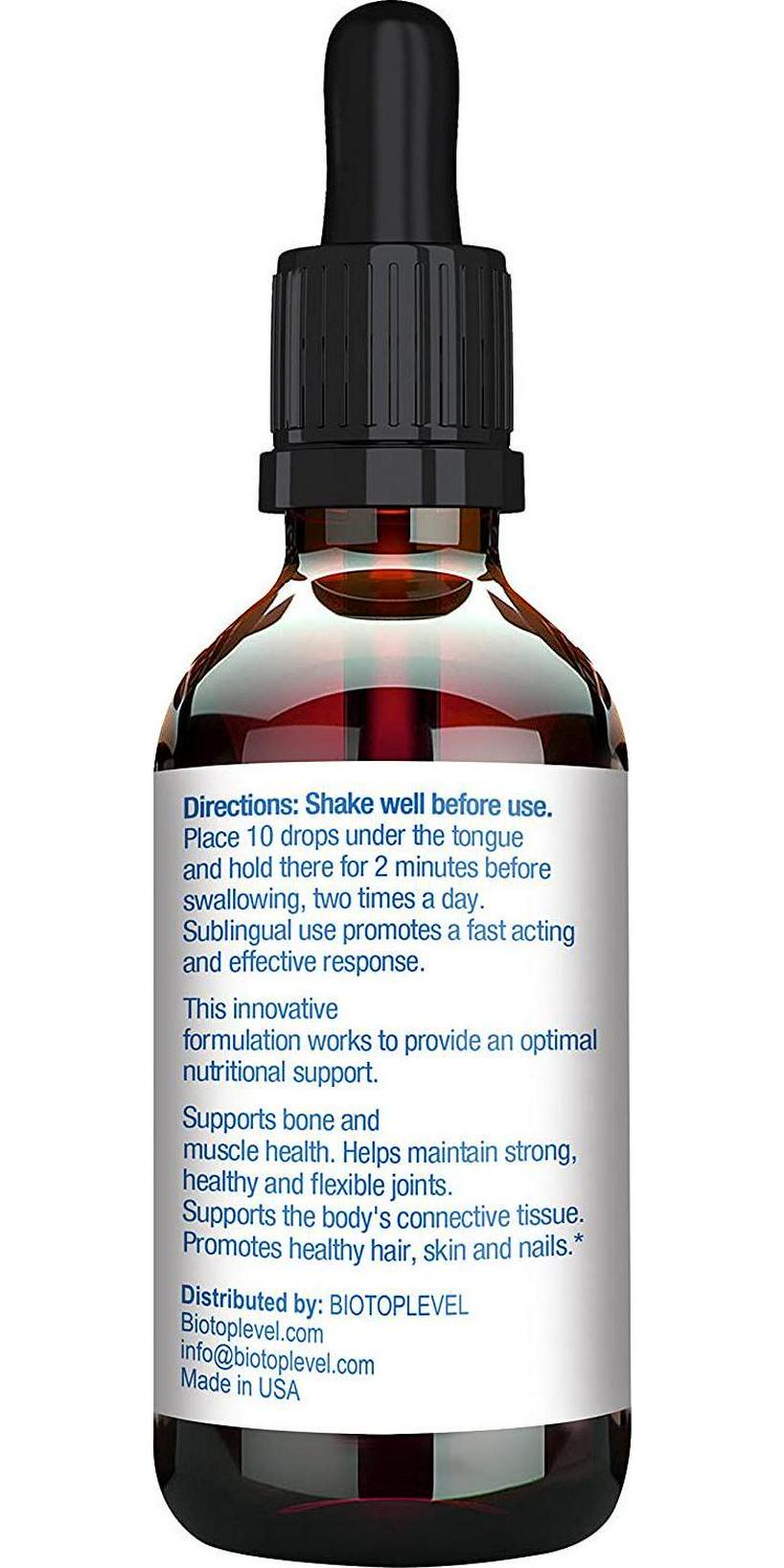 - ? SEVEN OF THE MOST EFFECTIVE AND ESSENTIALLY SUBSTANCES (Glucosamine, Chondroitin, MSM, Hyaluronic Acid, Collagen Hydrolyzed, Biotin, Vitamin C) in an easily absorbed liquid form for supporting the good health of joints, bones and muscles; increases skin firmness and hydration. The formulation have anti-aging properties, improves skin elasticity and skin moisture. This product combination also supports the strength and growth of hair and nails. Thickens fine hair.