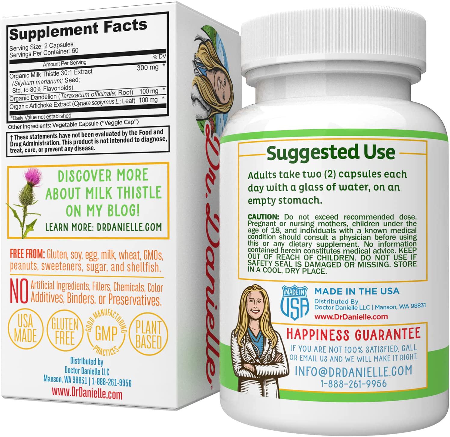 • Natural detox cleanse capsules: 30:1 EXTRACT highest quality liver support: Dr. Danielle’s Organic Milk Thistle is made from a effective, concentrated 30:1 extract. Her specially formulated 30:1 extract condenses the Silymarin, and the result is that 30 grams of Milk Thistle are concentrated into one single gram. Dr. Danielle’s 30:1 extract is 30X stronger than regular Milk Thistle capsules.