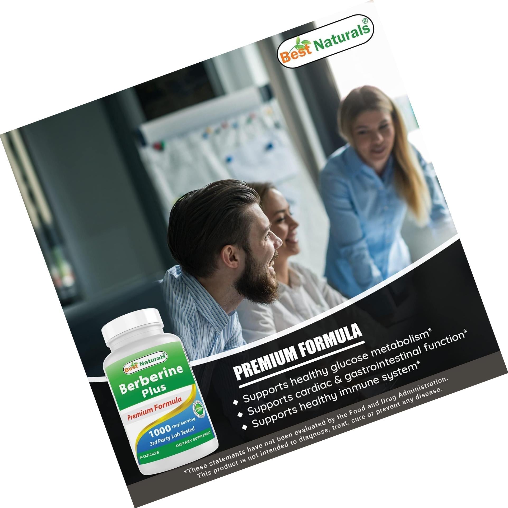 Best Naturals Berberine Plus 1000mg per Serving, (Non-GMO) 60 Capsules - Contains Berberine HCL 1000mg, Vitamin C 120mg and Zinc Gluconate 30 mg