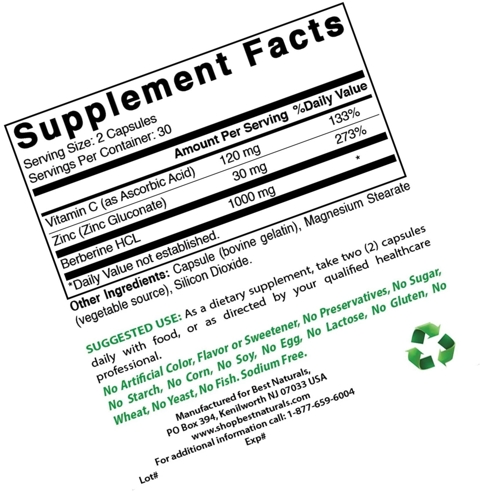 1000mg capsules, berberine plus, high-quality, non-gmo, vitamin c, zinc