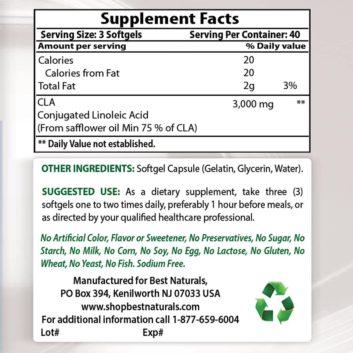 Best Naturals High Potency CLA, 1000 mg, 120 Softgels