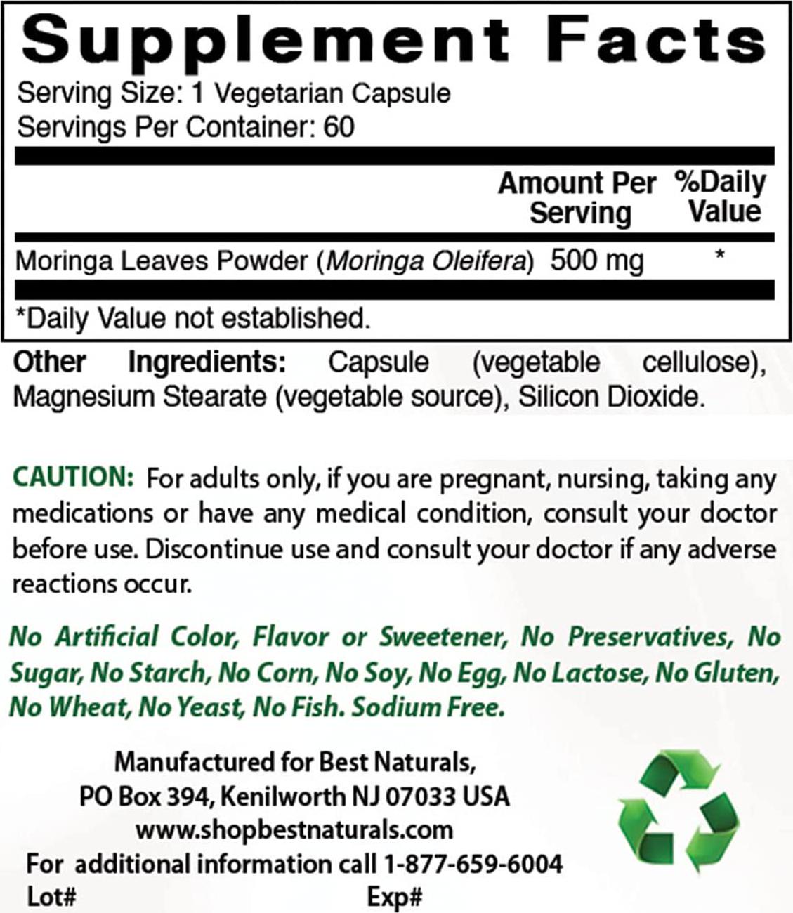 Best Naturals Moringa Superfood 500 mg 60 Veggie Capsules