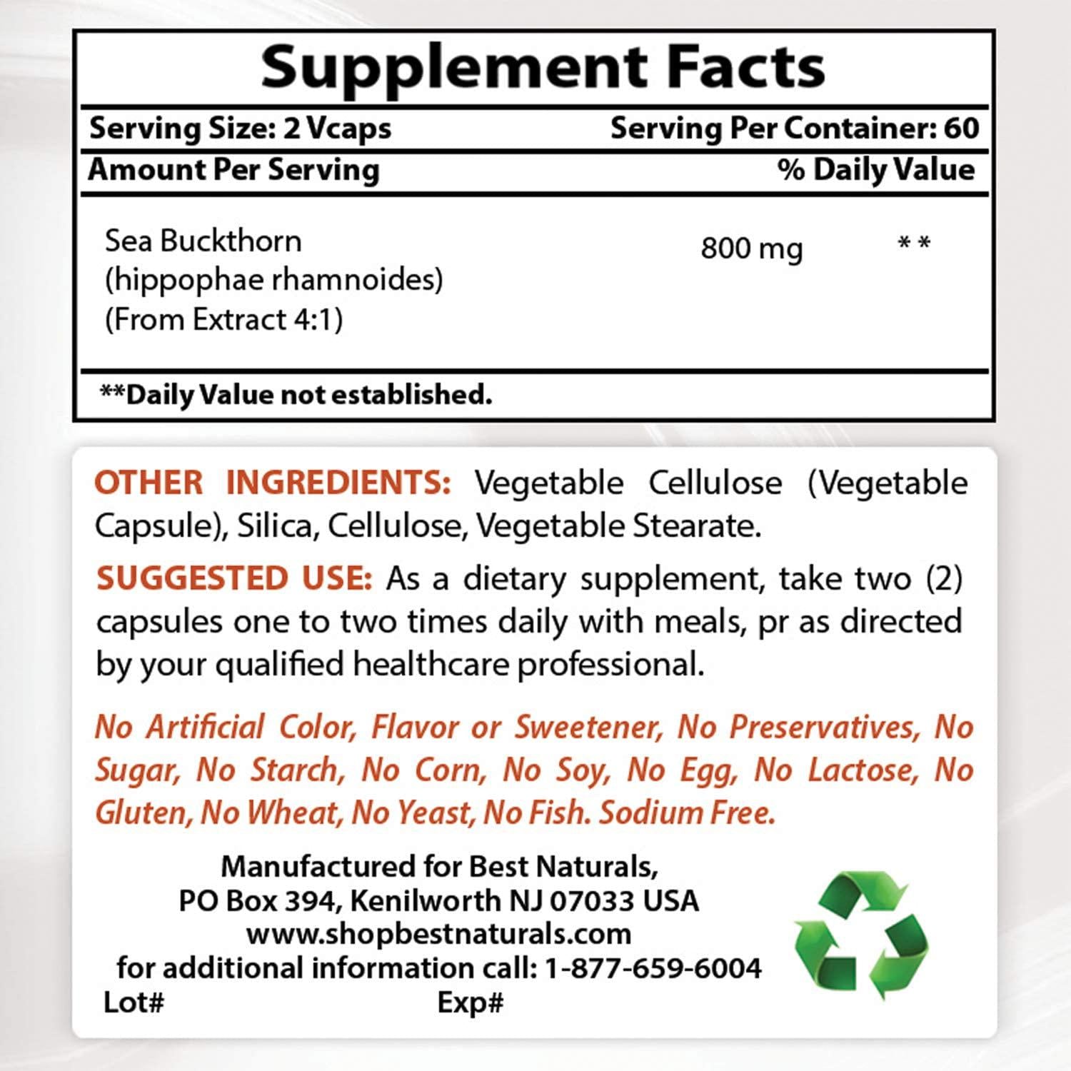 800mg, best naturals sea buckthorn, dietary supplement, high-quality, veggie capsules, well-being