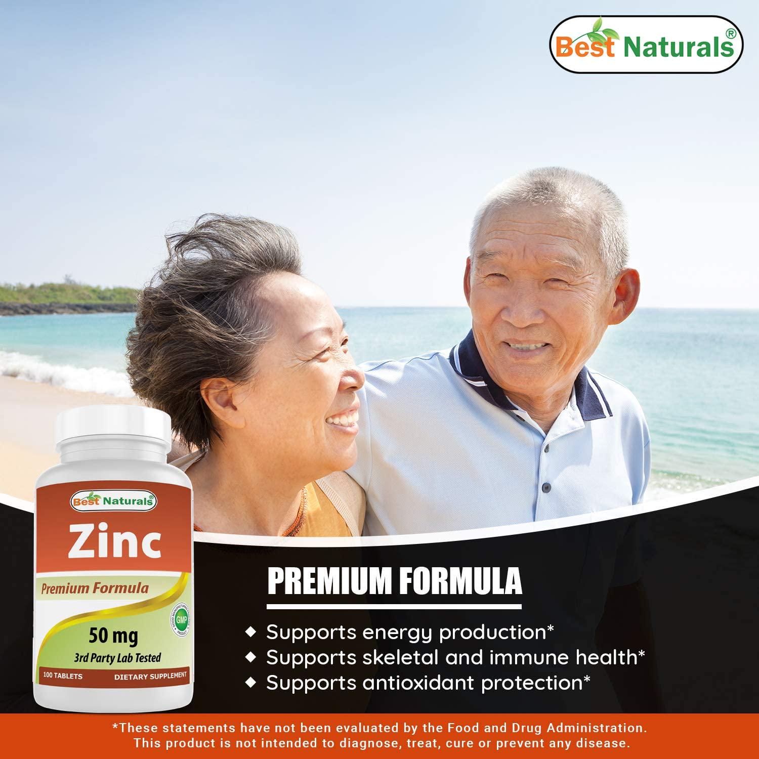 Best Naturals Zinc 50mg Supplements (as Zinc Gluconate) - Zinc Vitamins for Adults Immune Support - 100 Tablets (100 Count (Pack of 3))