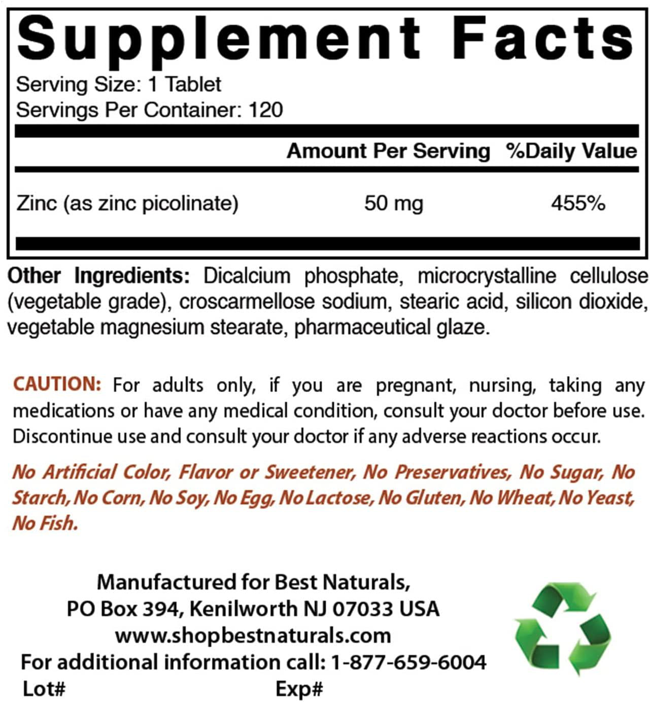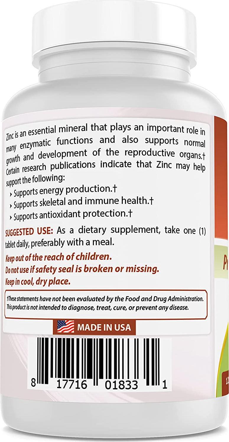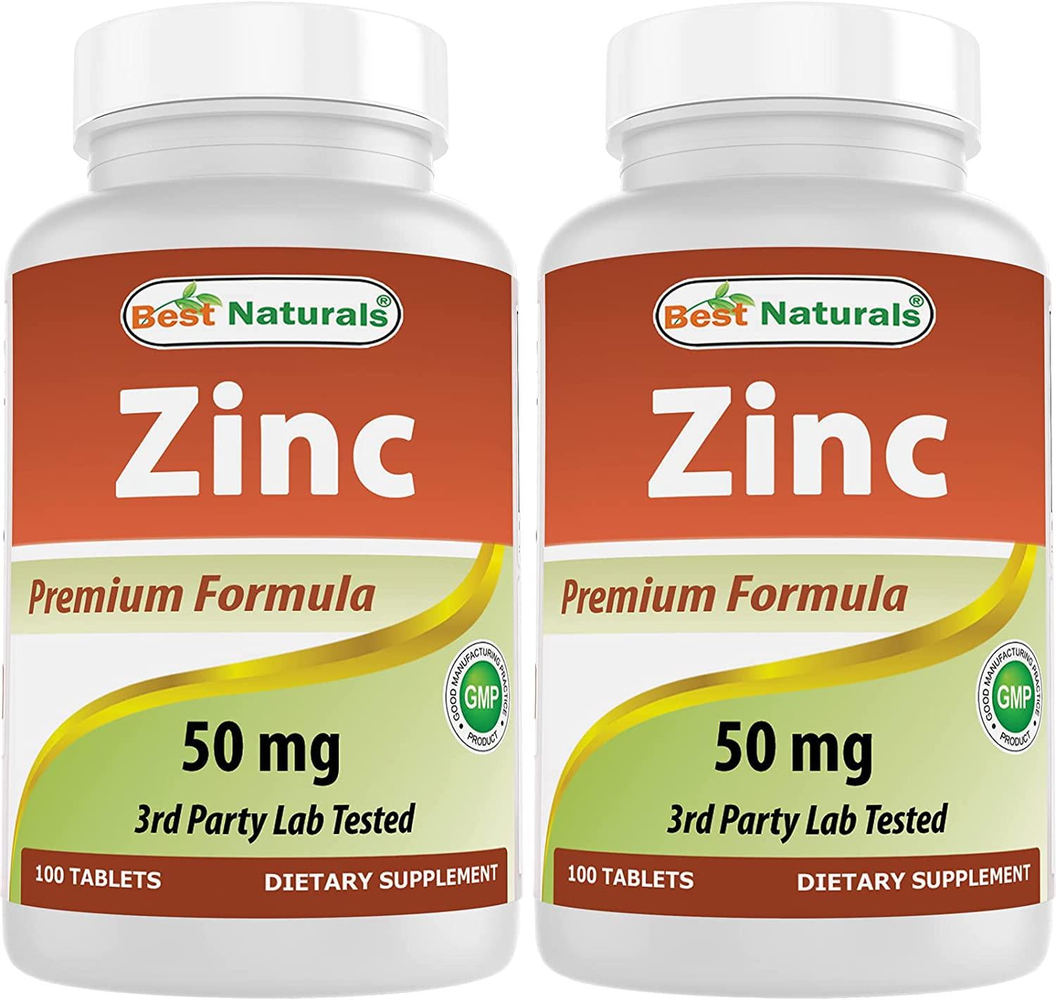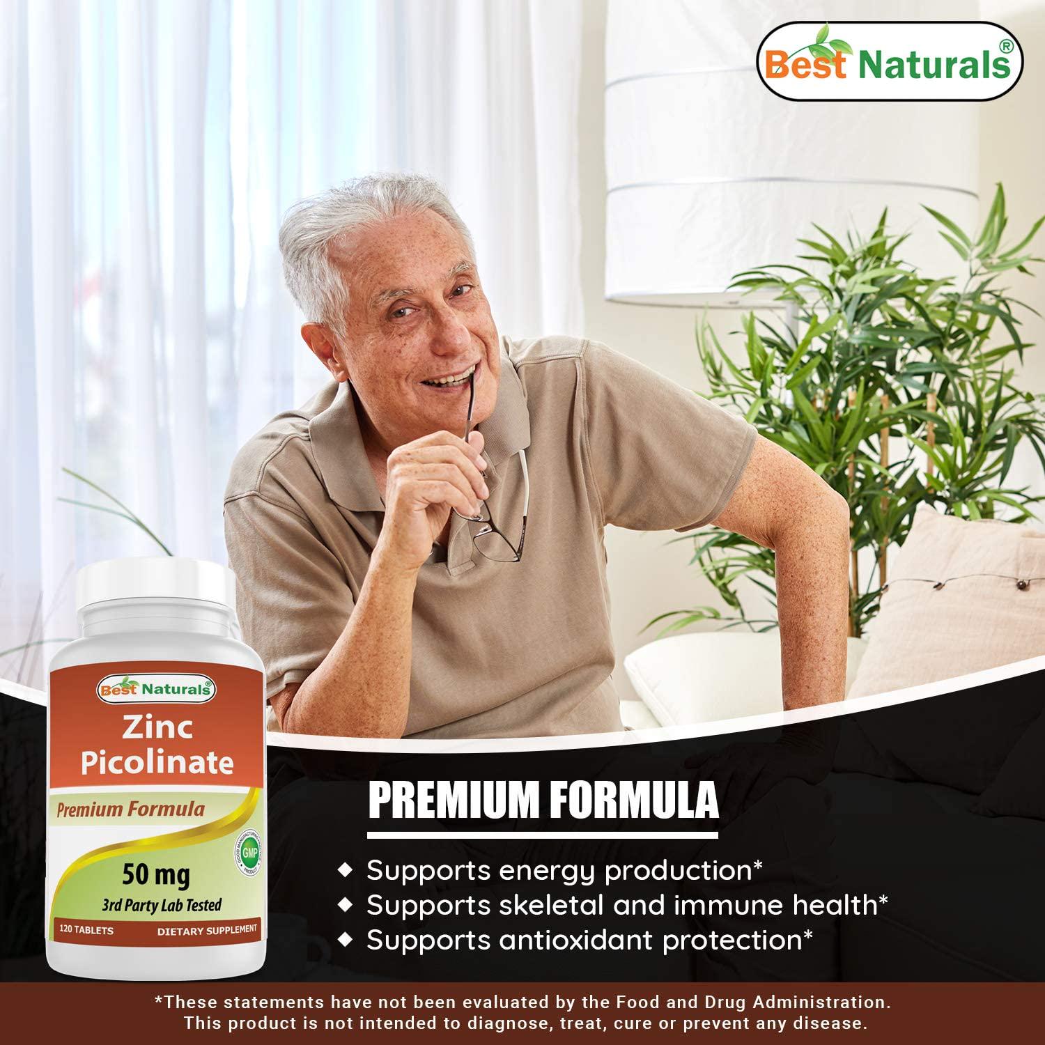 Best Naturals Zinc 50mg Supplements (as Zinc Picolinate) - Zinc Vitamins for Adults Immune Support - 120 Tablets (120 Count (Pack of 2))