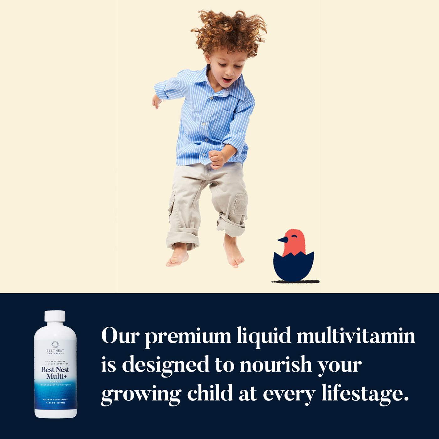 Best Nest Multi+ for Kids Tropical Flavor, Liquid Multivitamin, Methylfolate (Folic Acid), Methylcobalamin, Complete, Natural Whole Food Blend, Prebiotics, Immune Support, 16 oz, Best Nest Wellness