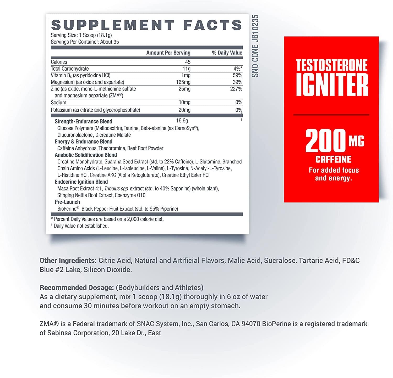 There are many reasons why B-NOX Androrush has been an industry leader in pre workout performance since its inception. For starters, we arent just your typical pre workout that is commonly found in the supplement world. Through our scientifically engineered formula with key muscle building ingredients, B-NOX Androrush targets strength, superior energy, testosterone support, blood flow, sharp focus, and overall pump performance. When it comes to maximizing your workout routine, Betancourt Nutrition knows the vital importance of healthy testosterone levels. Our Endocrine Ignition blend utilizes natural botanicals that have been clinically shown to support healthy testosterone levels in the body. Through our essential pre workout performance ingredients, B-NOX Androrush is ready to take your exercise routine to the next level.