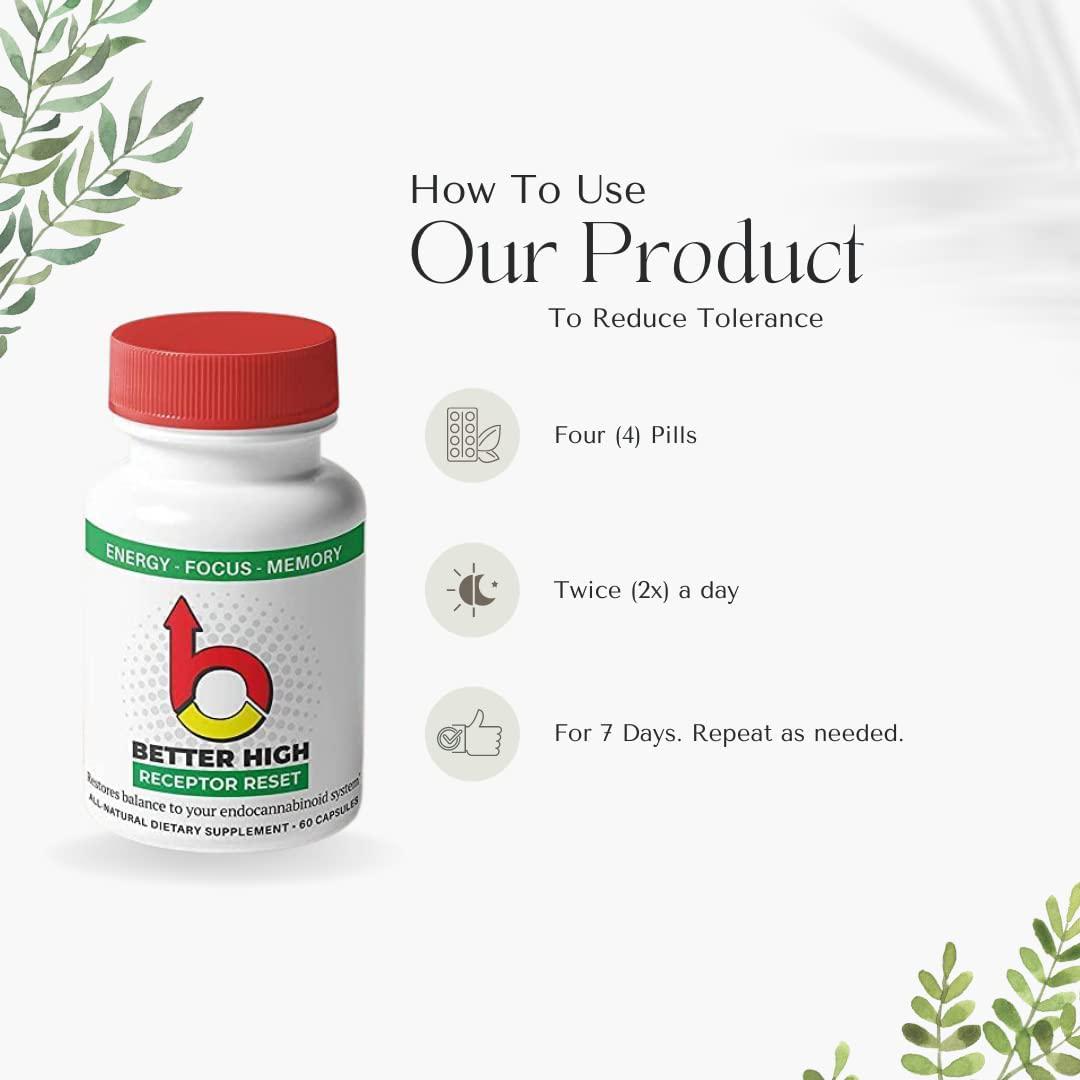 - RECOMMENDED EVERY 60 DAYS - Better High cleanses the body s natural endocannabinoid system. Repeat as needed. Individual results will vary. Most people do see desired results and do have satisfactory experience with us. If not - please, contact us, and we will make things right! We always respond to messages that reach us. We provide support, and do not request unreasonable returns, photos, fees, and so on. Your satisfaction is our top priority.