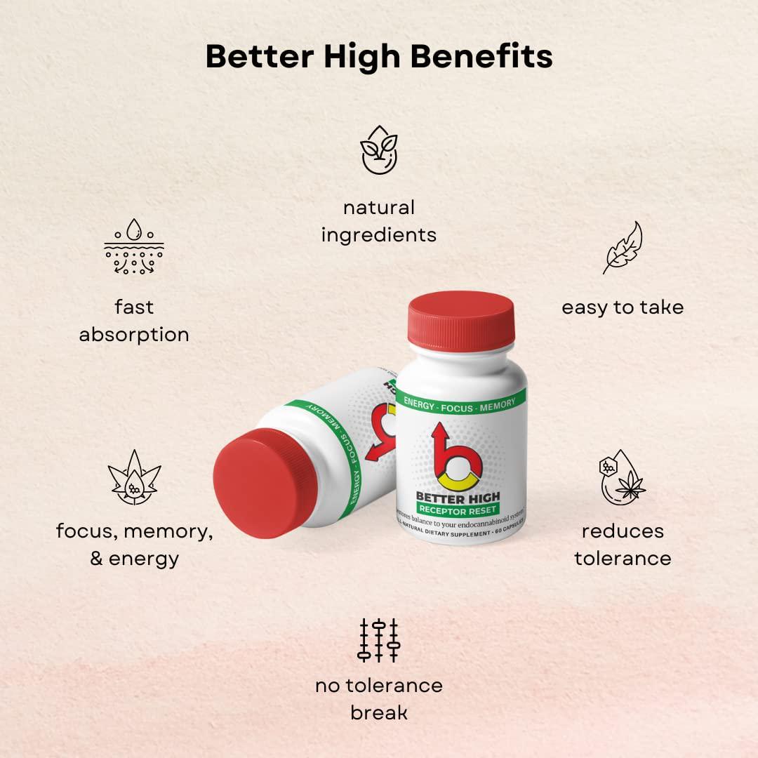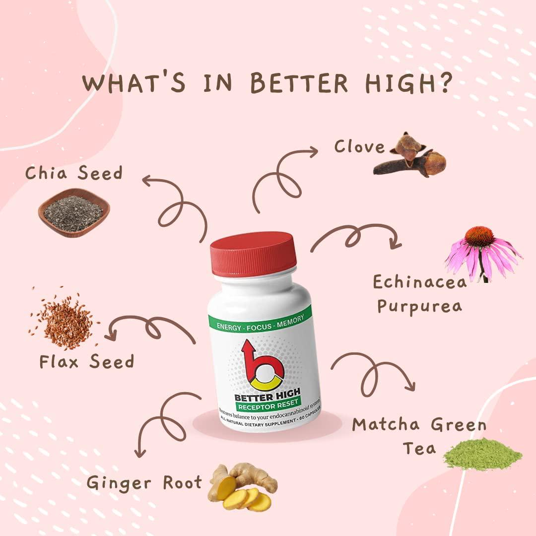 Better High Receptor Reset, Tolerance Reduction Supplement, Detox Herbal Brain Cleanse Made in The USA
