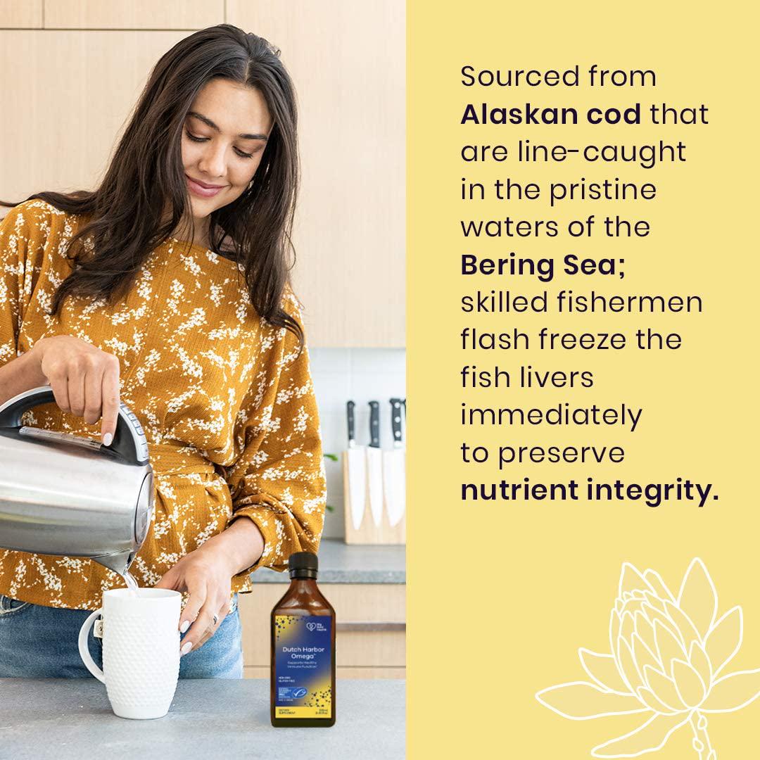 Our Dutch Harbor Omega Liquid is not just another liquid Omega-3 fish oil. The pristine waters of the Aleutian Islands are home to scores of fish species, including one that has been linked to health and wellness for more than a century: Alaskan Cod. This is a fish that contains high levels of omega-3 fatty acids, including EPA, DHA, and DPA. Studies show that omega-3 fatty acids are linked to immune function and energy metabolism, as well as building healthy nerves, brains, and cell membranes. Because omega-3s have been shown to improve chemical messaging and cell structure inside the body, these fats may help us respond better to immune challenges, enhance recovery after injury or overexertion, and even manage stress.* Product Details: