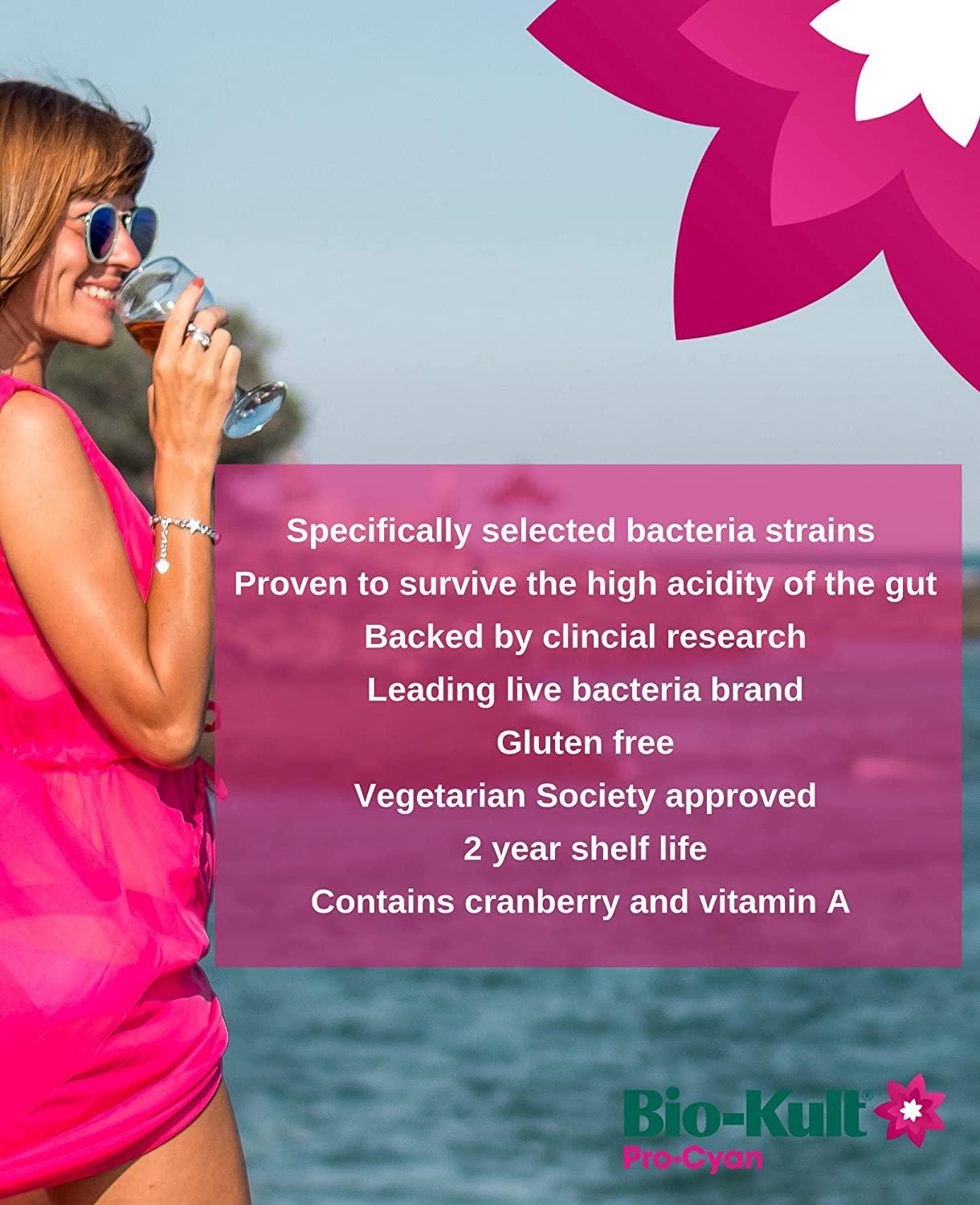 - Bio-Kult Pro-Cyan is a triple action probiotic formulation scientifically developed with cranberry extract two specifically-selected probiotic strains and vitamin A