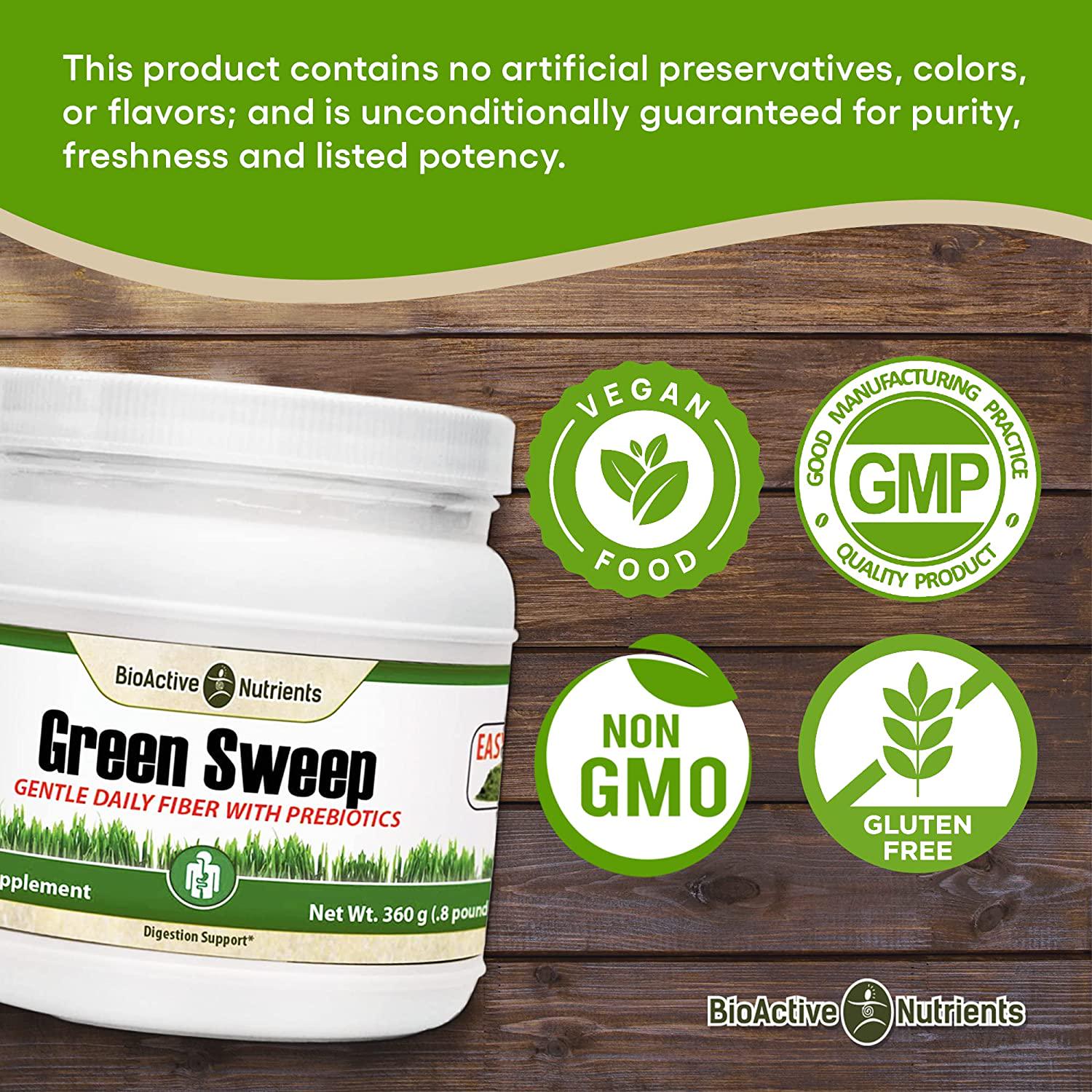 BioActive Nutrients Green Sweep Prebiotic Fiber Supplement - Advanced Daily Fiber Powder Supplements with Complete Prebiotics for a Gut Health Boost and a Healthy Life - for Women and Men - 360 Grams