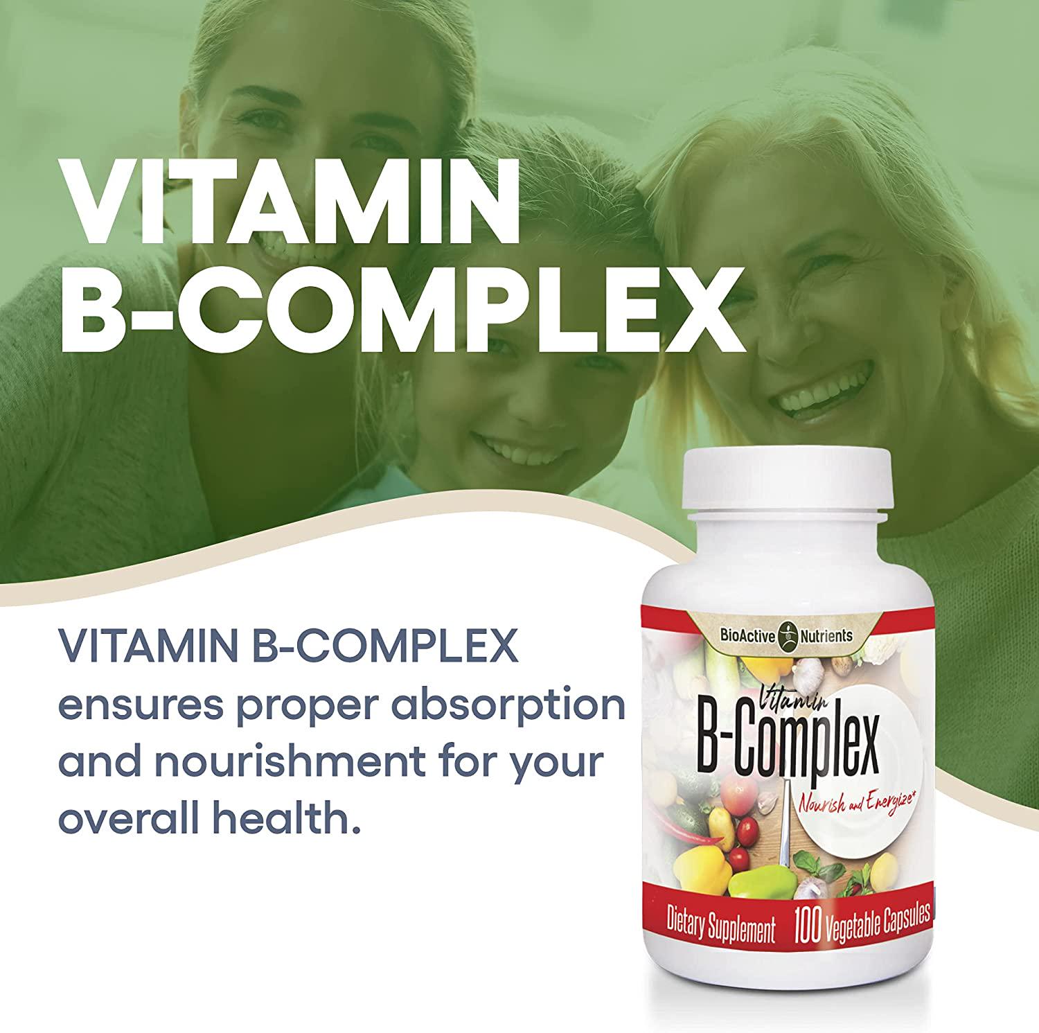 BioActive Nutrients Vitamin B Complex Dietary Supplement - 100 Vegetable Capsules - Scientific Blend to Nourish and Energize - Essential for Overall Health