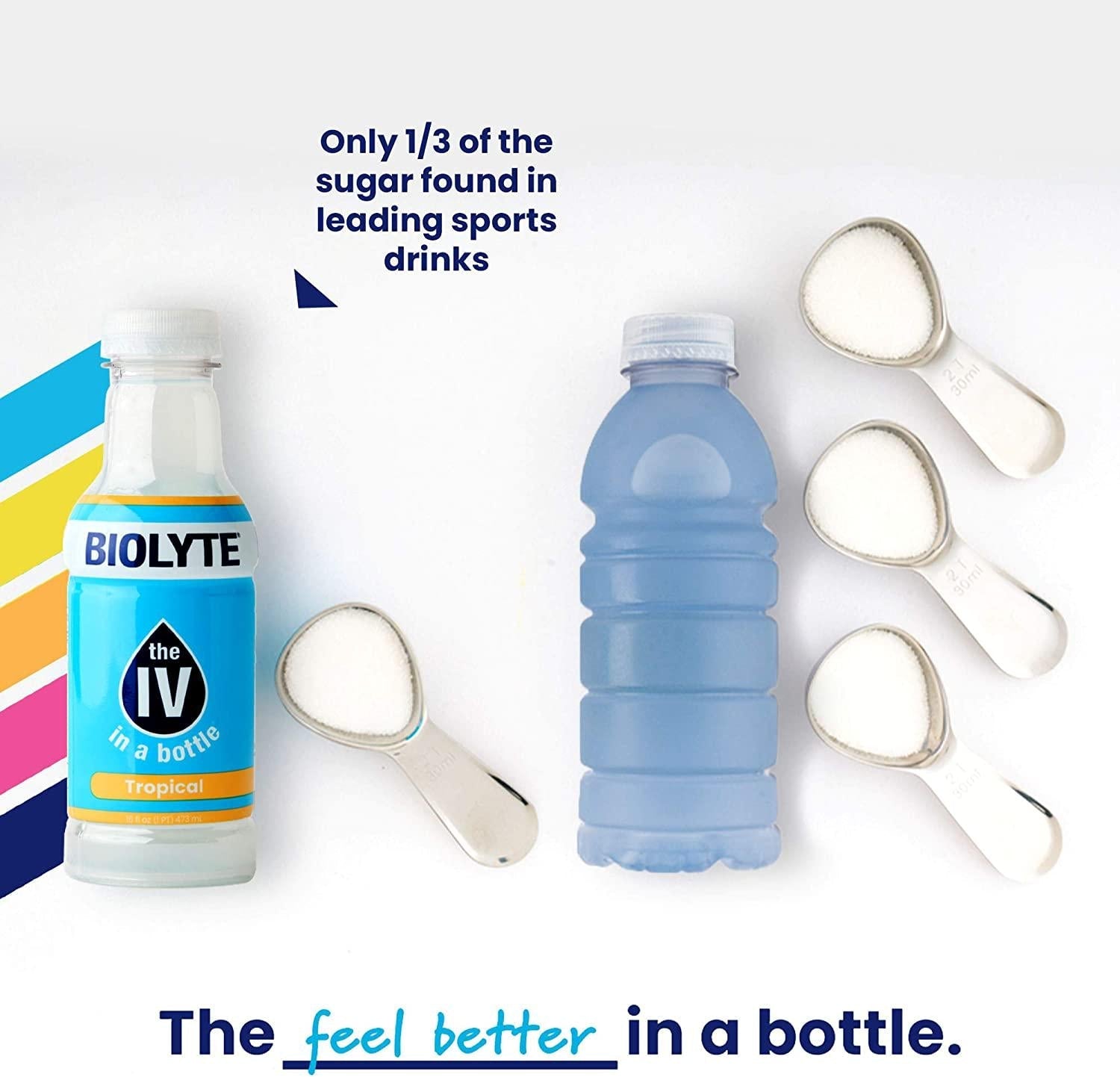 BIOLYTE Electrolyte Drink, Tropical 12 Pack | IV Liquid Bottle for Dehydration | Hydration Supplement Drink with B Vitamins | Amino Acid Energy Drinks | Keto-Friendly Natural Low Sugar
