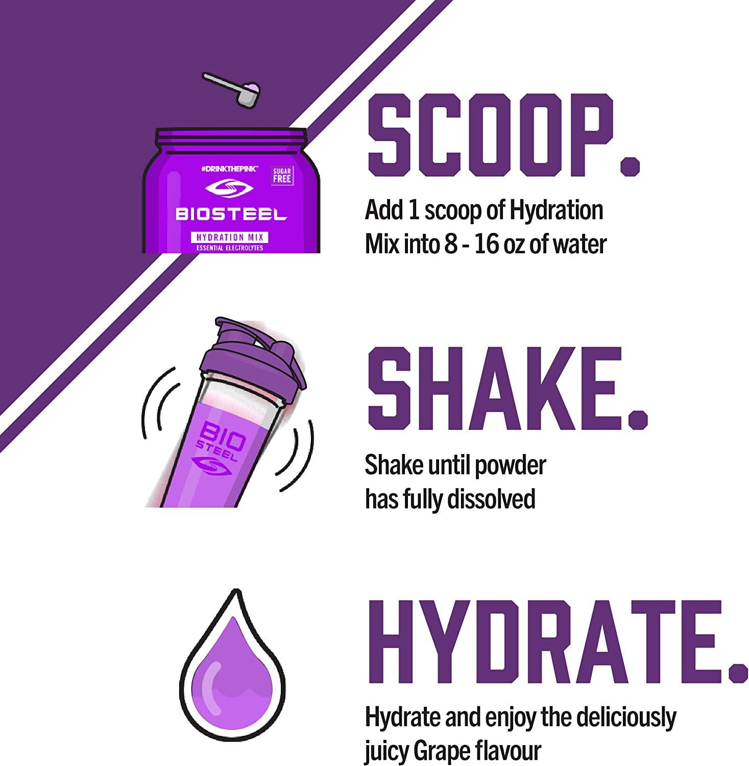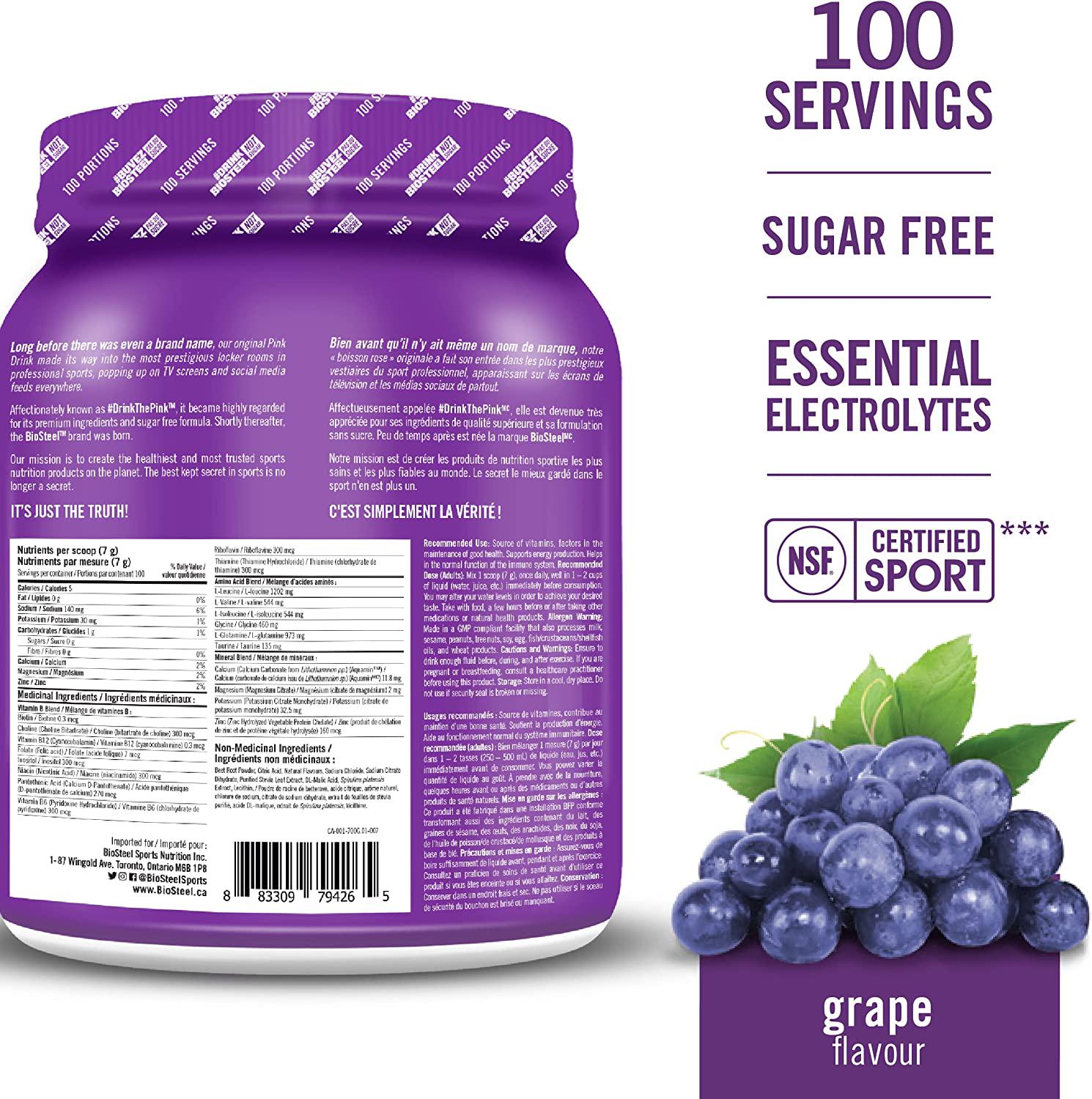 BioSteel Hydration Mix, Sugar-Free with Essential Electrolytes, Grape, 100 Servings