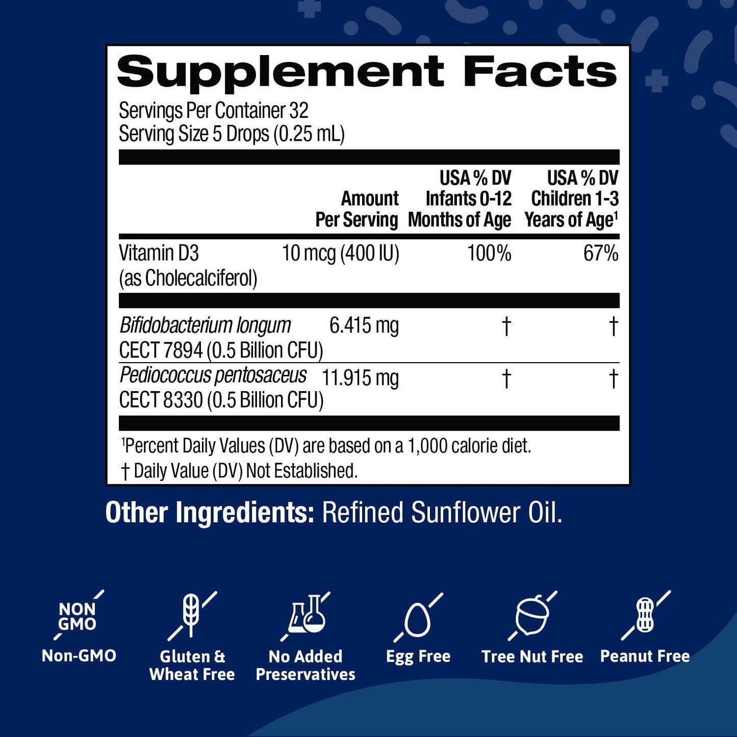 - VITAMIN D DROPS BABY: These flavorless, baby d drops & probiotic drops for baby provide baby immune support ages 0-3 years.* These are vitamin d baby drop & vitamin d for toddlers & vitamin d infant drops.