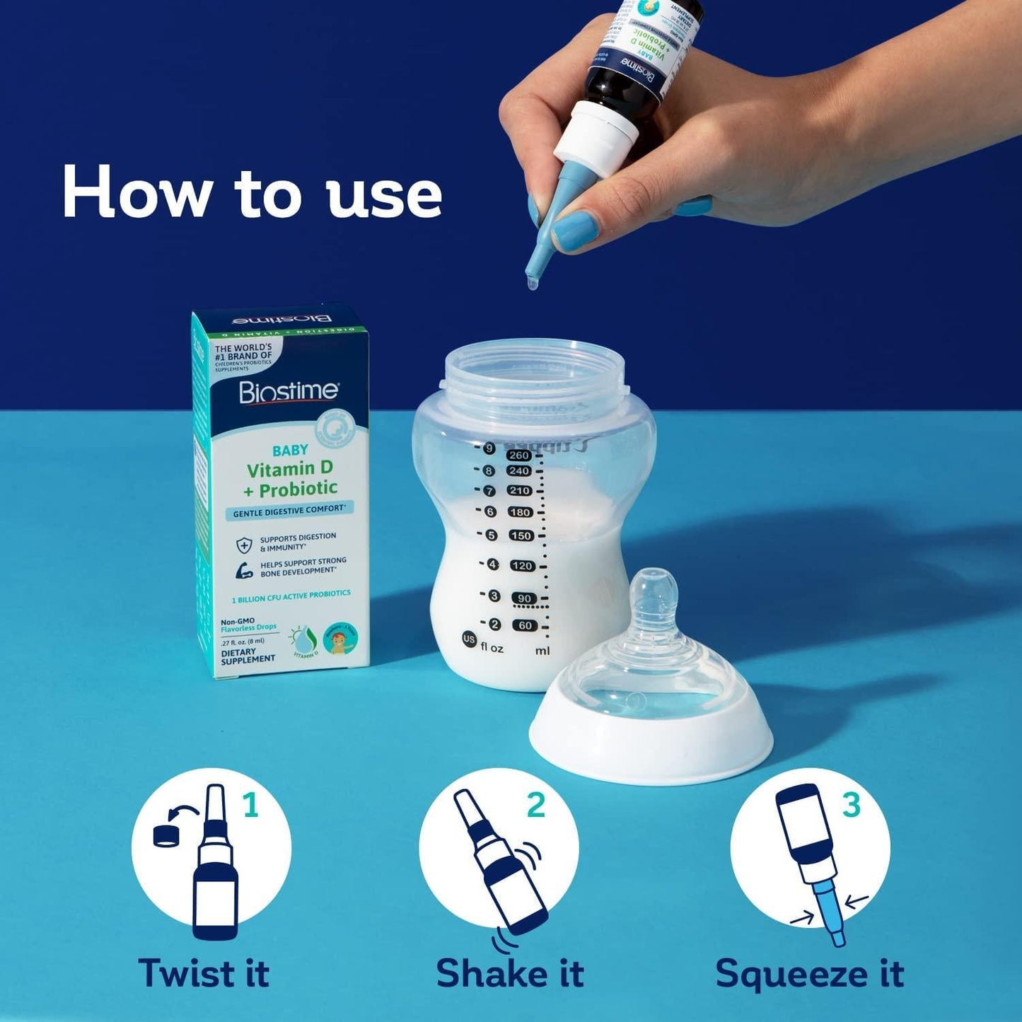 Biostime Vitamin D Drops for infants, kids vitamin d and baby probiotic drops, infant probiotic, vitamin d kids, infant vitamin d drops newborn vitamin d drops- immune support -400 IU per drop - 32 SVGs