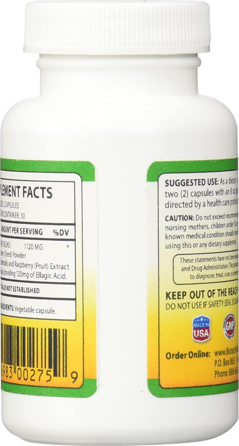 Biotech nutritions ellagic acid 1120 mg serving 60 capsules made in usa.