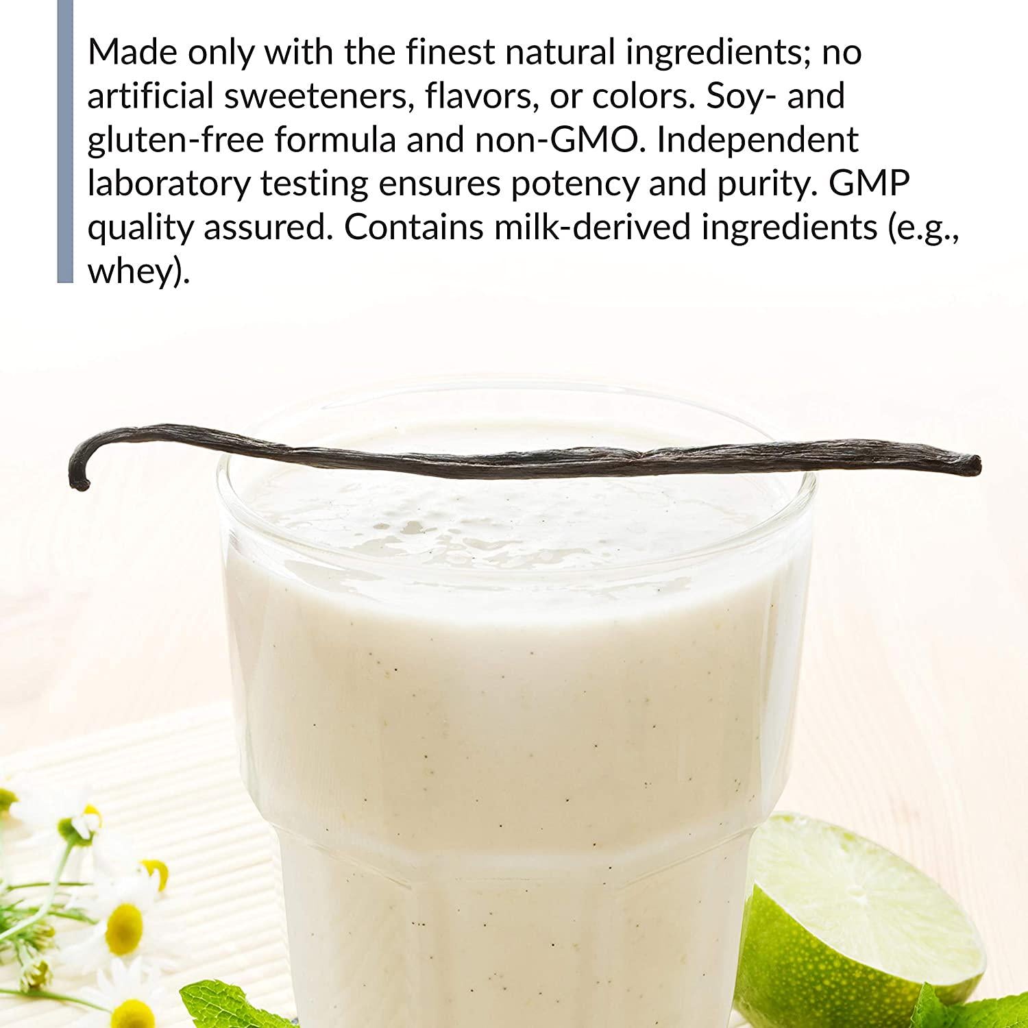 - Made only with the finest natural ingredients; no artificial sweeteners, flavors, or colors. Soy- and gluten-free formula and non-GMO. Independent laboratory testing ensures potency and purity. GMP quality assured. Contains milk-derived ingredients (e.g., whey).