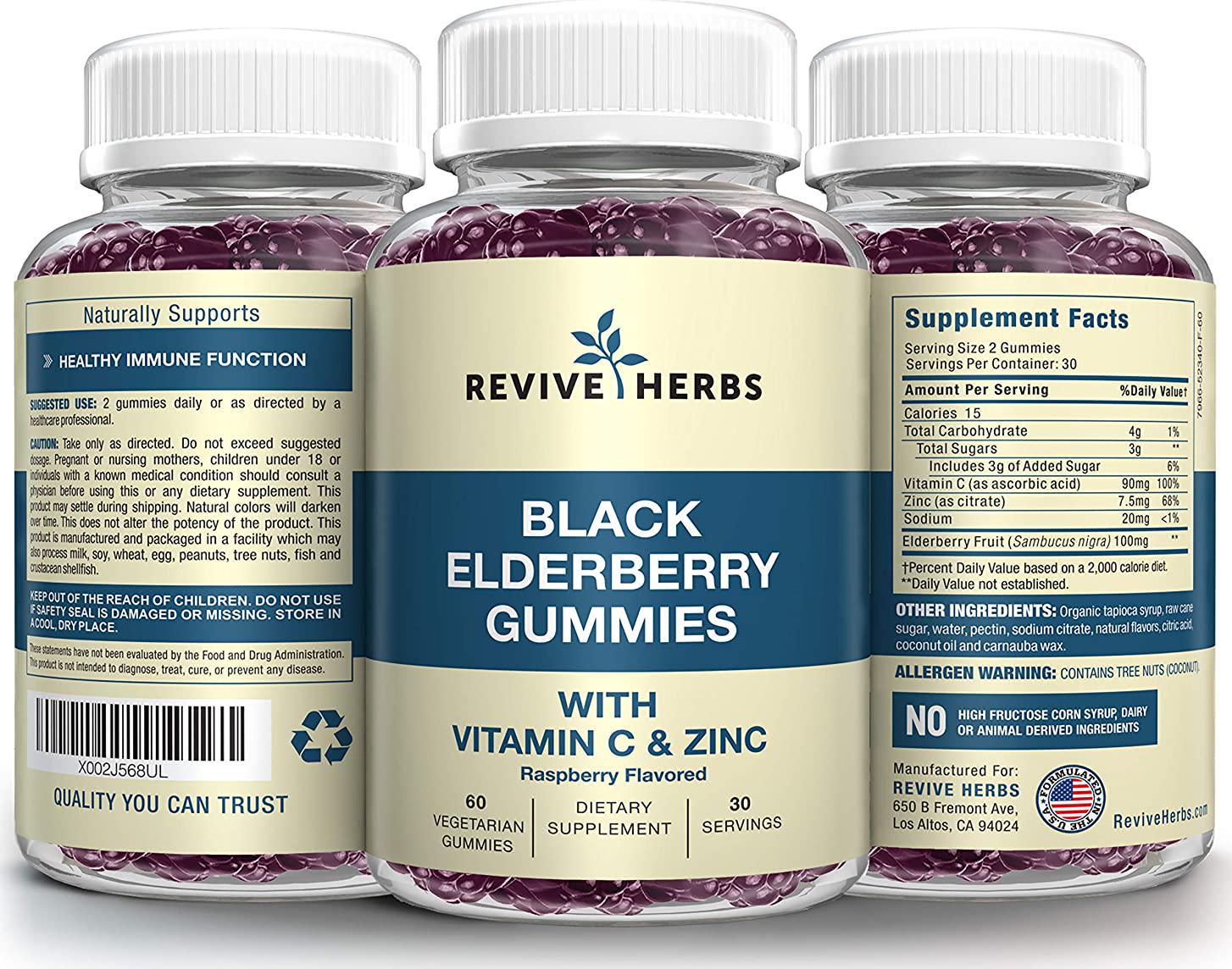 Black Elderberry Gummies with Vitamin C and Zinc - Sambucus Nigra - Naturally Supports Healthy Immune Function for Men and Women - 30 Servings, 60 Vegetarian Gummies - by Revive Herbs