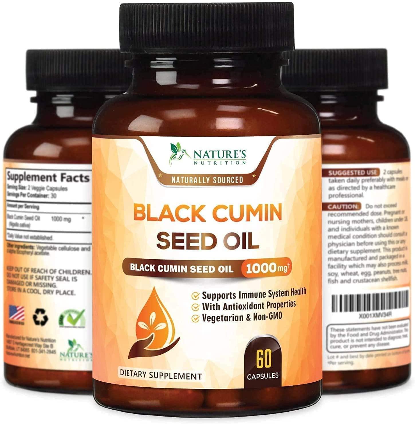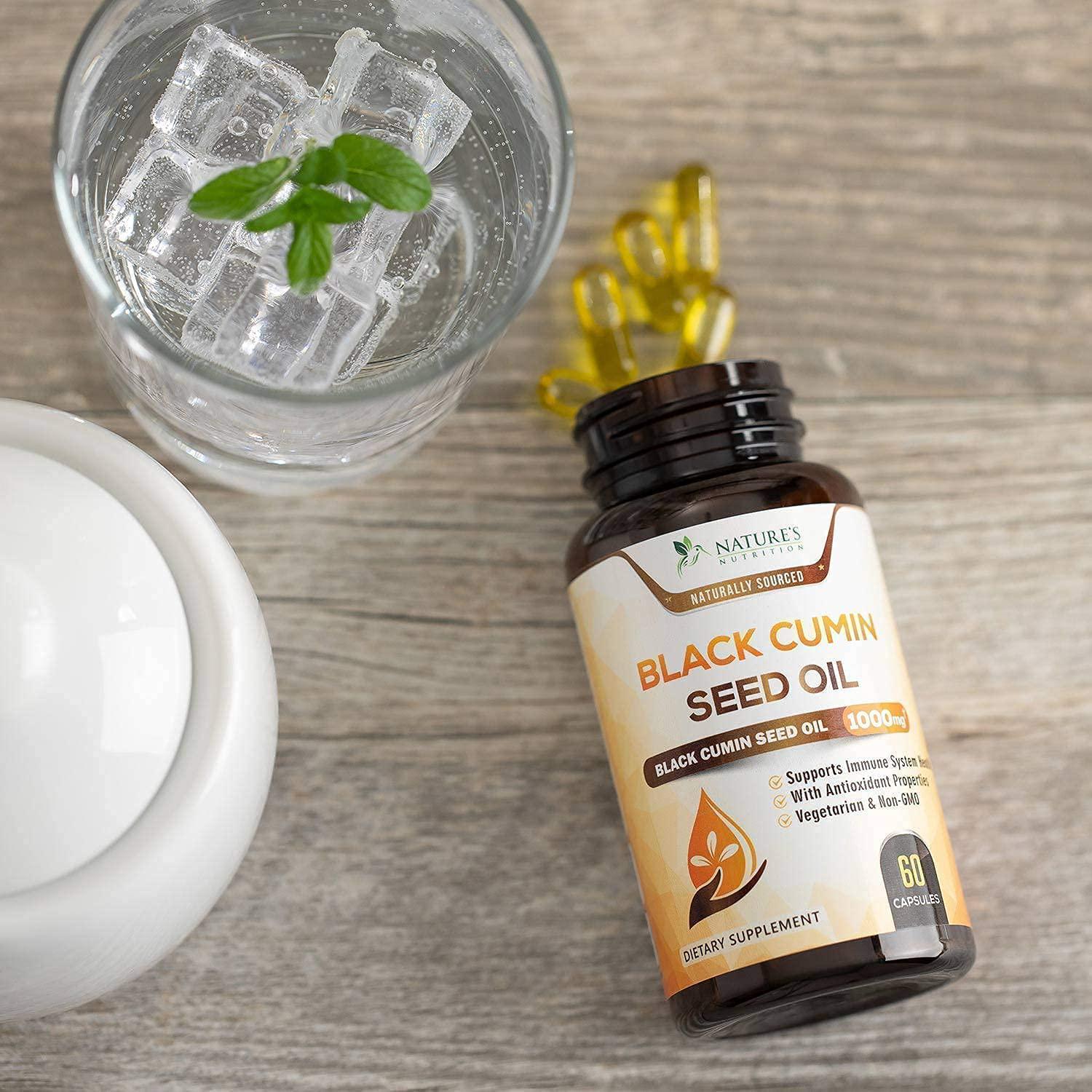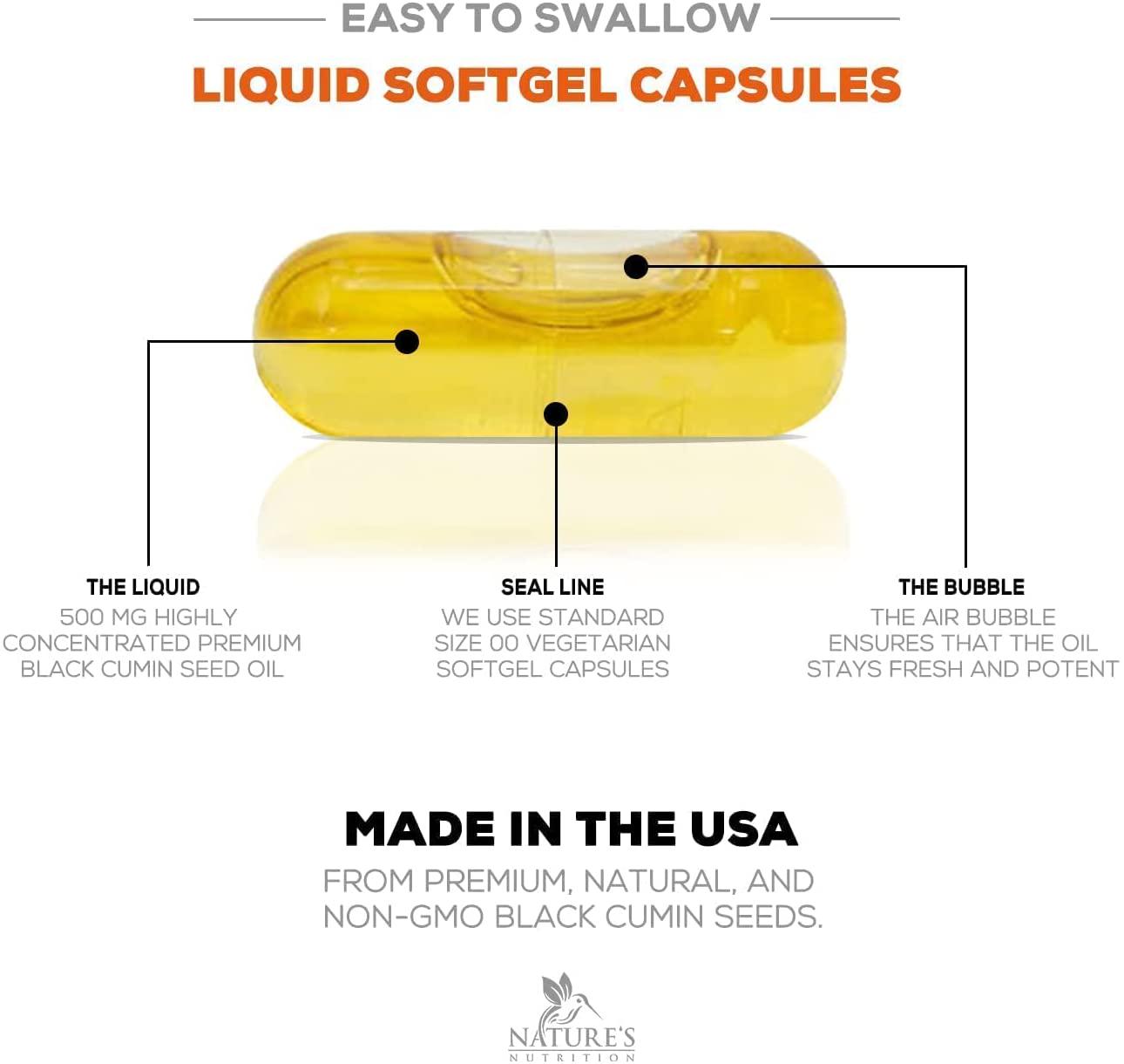 Black Seed Oil Capsules, Max Potency Cold-Pressed 1000mg - Premium Nigella Sativa Black Cumin, Amazing Antioxidant Highest Thymoquinone, Non-GMO Supplement Pills by Natures Nutrition