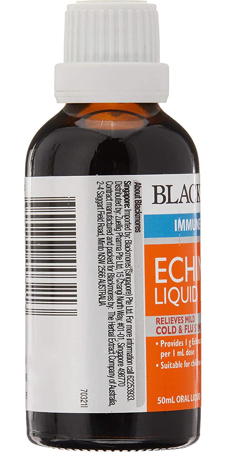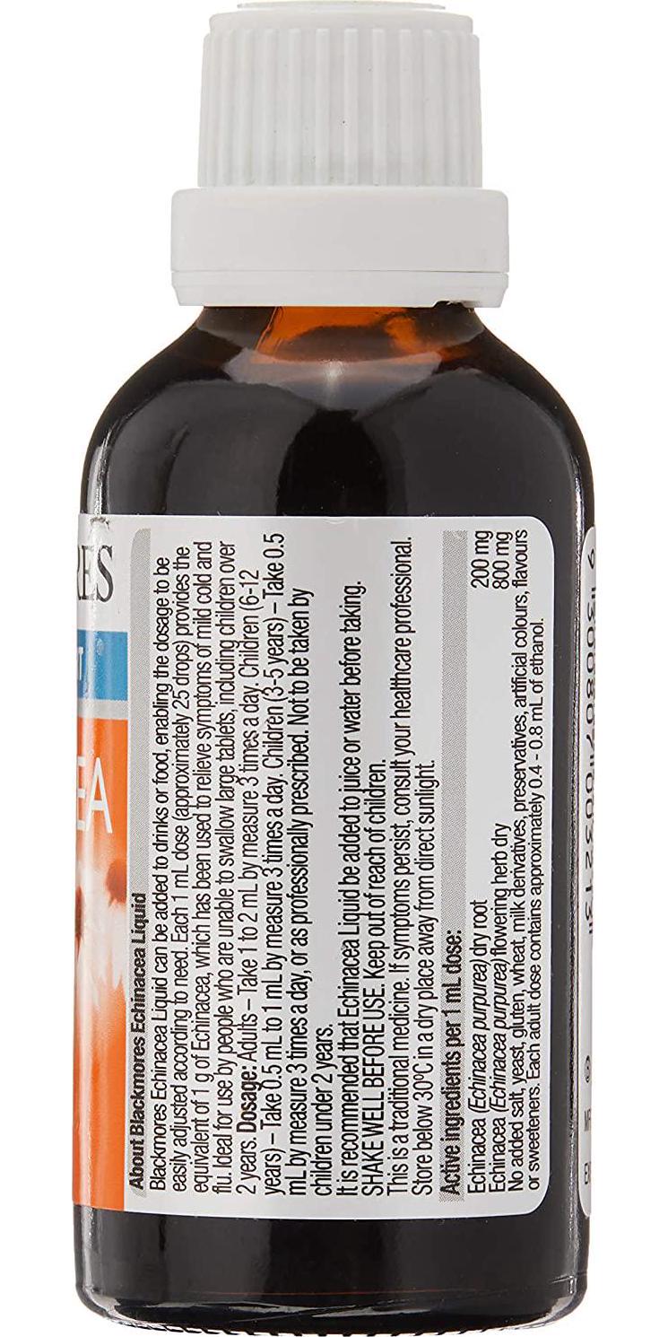 - Blackmores Echinacea Liquid with echinacea, traditionally used in western herbal medicine to relieve sore throat and cough symptoms associated with colds and flu.