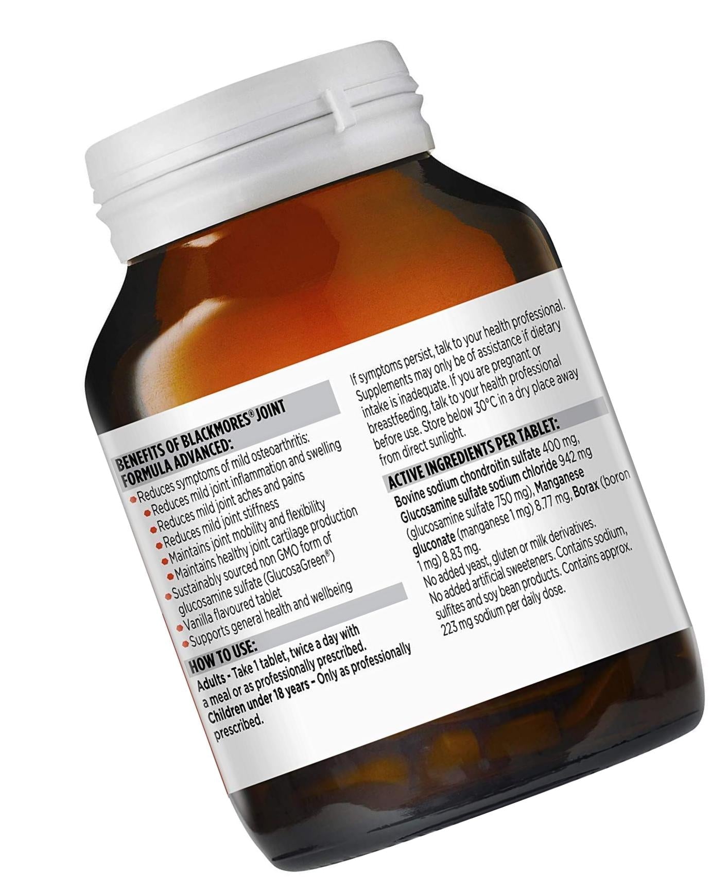 Blackmores Joint Formula Advanced contains a clinically-trialled dose of glucosamine sulfate with chondroitin, manganese and boron for symptomatic relief of osteoarthritis.