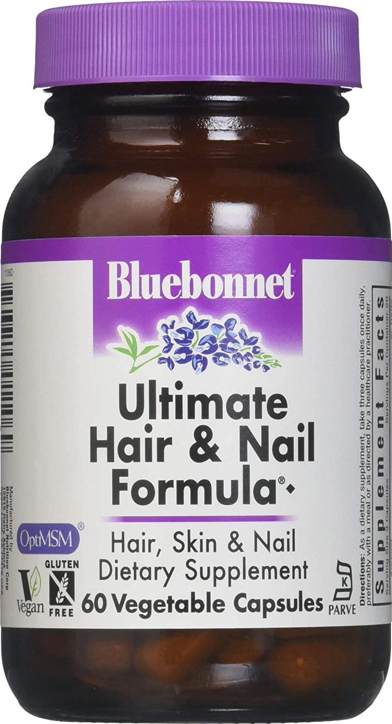 Bluebonnets Ultimate Hair & Nail Formula Vegetable Capsules are specially formulated with high potency vitamins, minerals, amino acids, horsetail silica, and OptiMSM a superior form of active sulphur, for optimal hair and nail support in easy-to-swallow vegetable capsules for maximum assimilation and absorption.