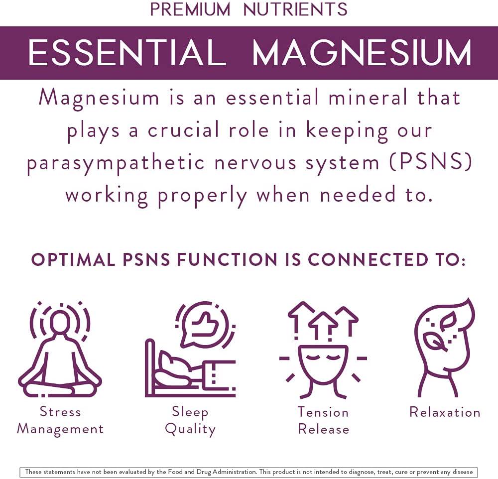 There is no need to carry unnecessary extras when unwinding and relaxing. Thats why our formula contains 450mg of pure magnesium powder and a bit of natural-cherry flavor fun. Our high-absorption magnesium supplement directly influences and supports the PSNS, leading to a relaxing and stress-free experience.