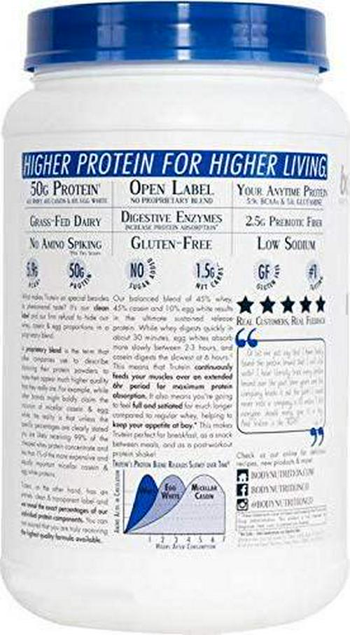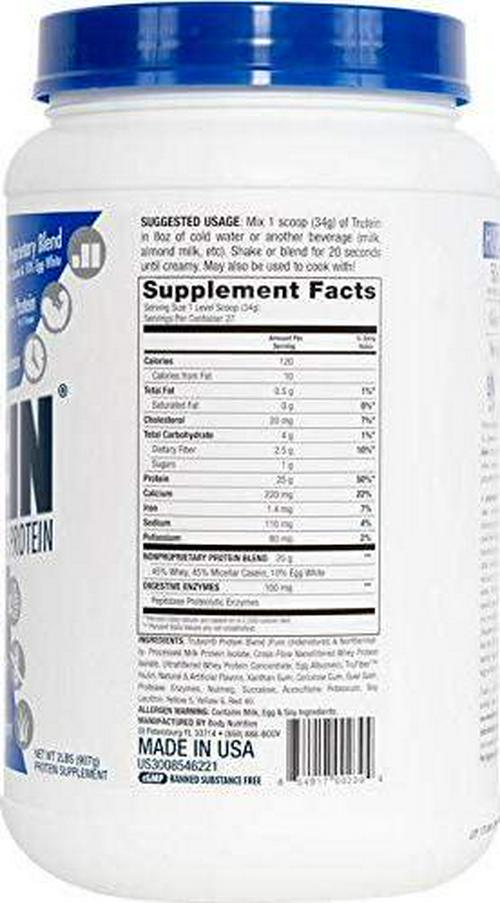 Body Nutrition Protein Powder - Trutein Eggnog 2lb Whey, Casein and Egg White - Natural Low Carb Keto Friendly Drink - Zero Sugar - Lean Muscle Builder, Weight Loss, Workout, Recovery
