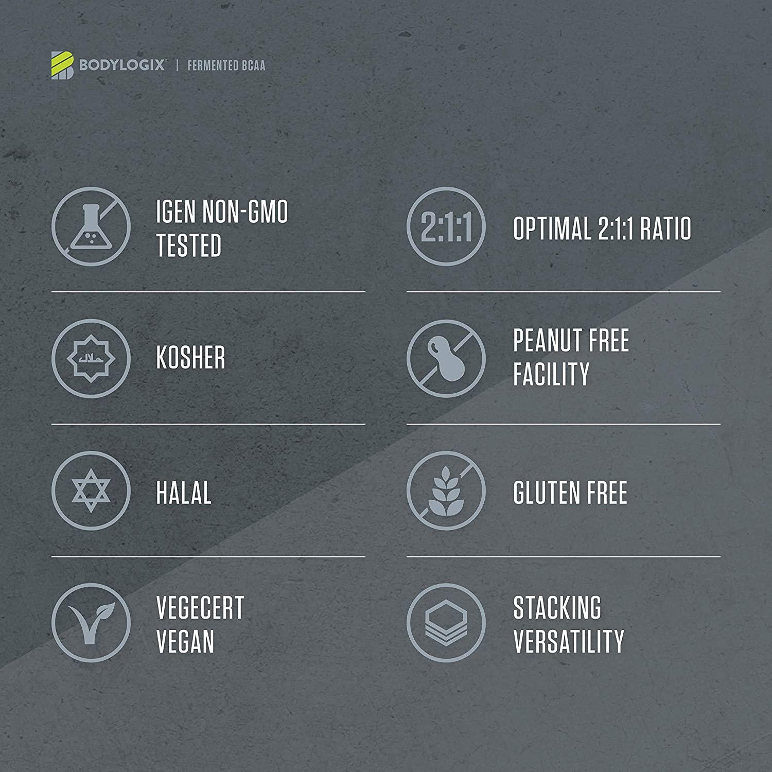 bcaas, bodylogix fermented bcaa powder, muscle recovery, nsf certified, unflavored, vegan