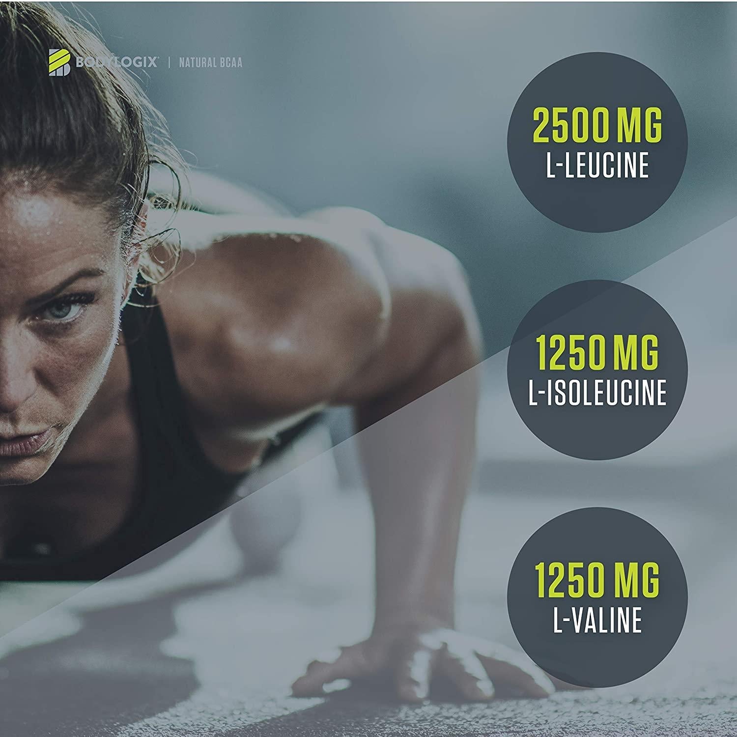 Bodylogix Natural BCAA contains 5000mg of Branched Chain Amino Acids with an optimal 2: 1: 1 ratio of L-Leucine, L-Isoleucine and L-Valine, Bodylogix Naturals BCAA supports muscle growth and recovery. Maxime training and unleash athletic performance.