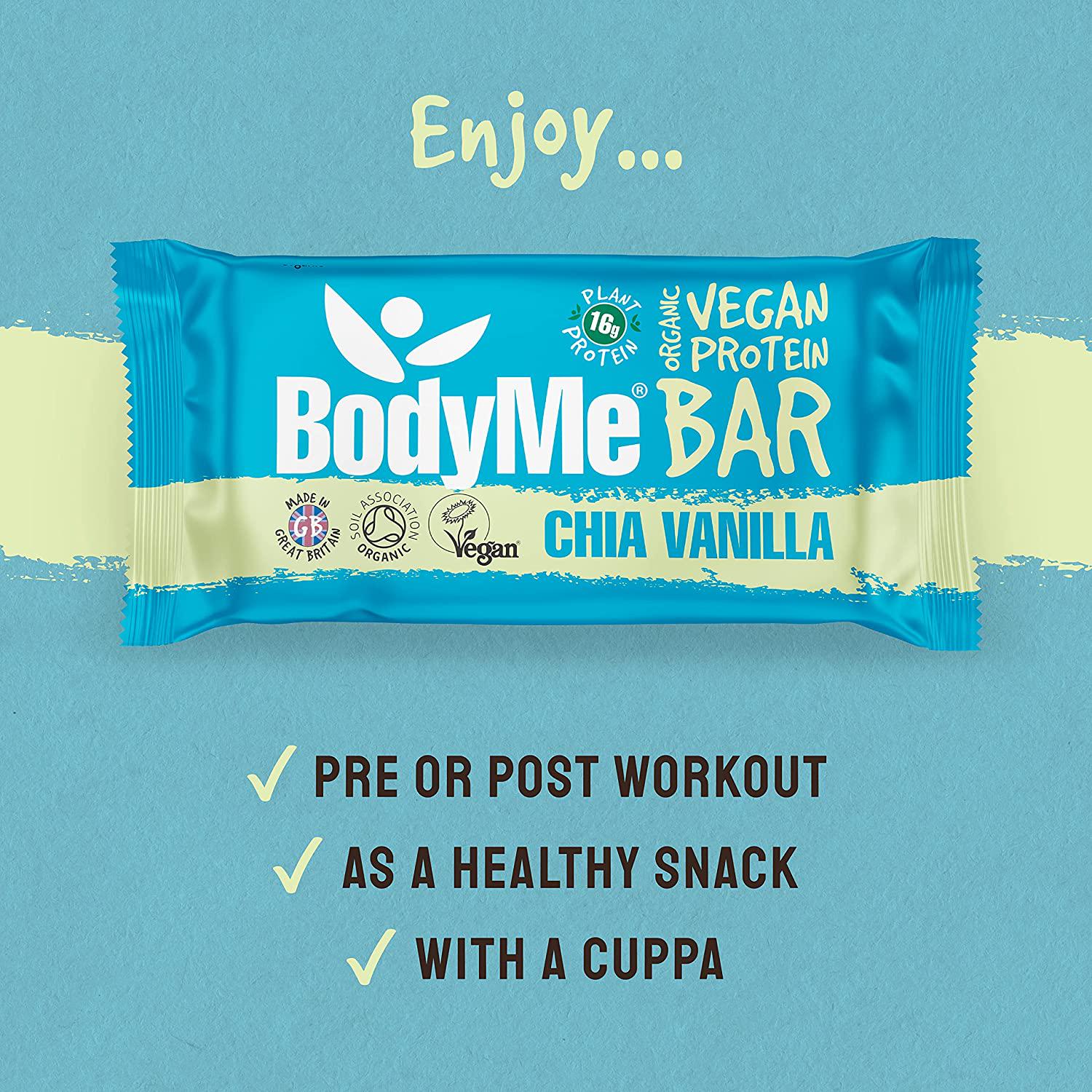 BodyMe Organic Vegan Protein Bar | Raw Chia Vanilla | 12 x 60g Vegan Protein Snack Bars | Gluten Free | 16g Complete Protein | 3 Plant Proteins | All Essential Amino Acids | High Protein Vegan Snacks
