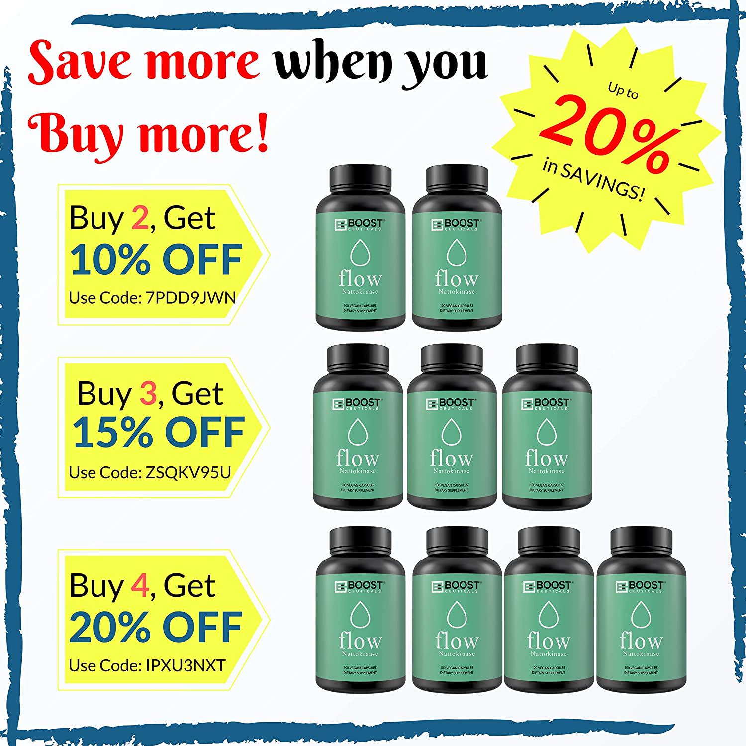 The advantage of Boostceuticals heart health Nattokinase plus in the form of Soybean Fibrinase Extract 200mg 4000 Fibrinolytic Units (not usual 2000 fu) of activity per capsule is it offers positive effects of Nattokinase. This can address issues changing physiology of blood vessel walls as we age in which blood thinners assist in preventing risk of ill health and avoid blood restriction, arterial pressure and slow blood flow. Best Nattokinase 4000IU for lowering high blood pressure naturally to avoid taking high blood pressure drugs and worry about lower your blood pressure later.*