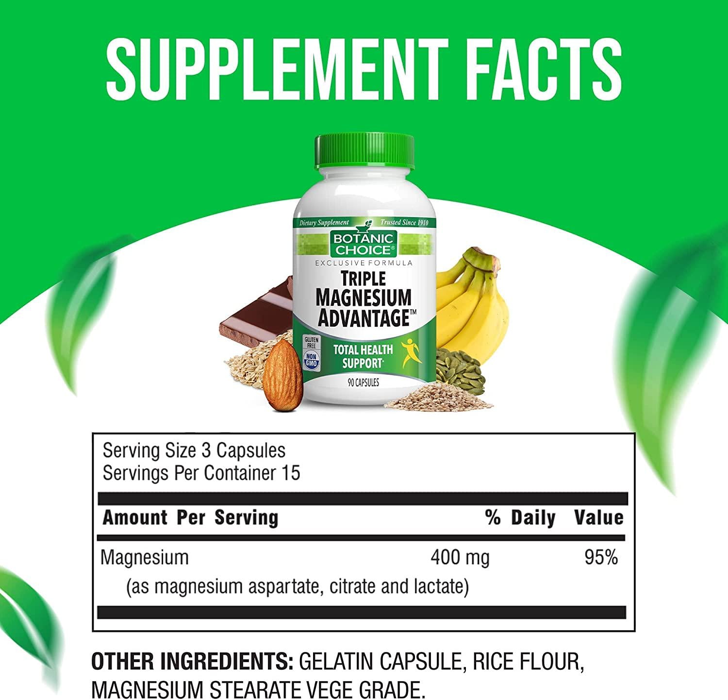 Botanic Choice Triple Magnesium Advantage, Magnesium Triple Complex for Nerve and Heart Health, Easy to Swallow Magnesium Blend Capsules for Digestive and Muscular Health