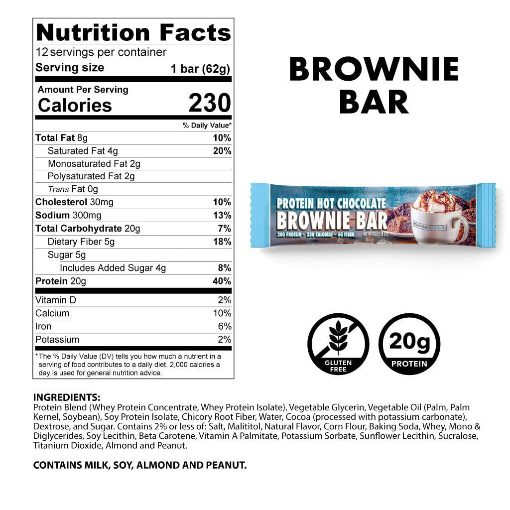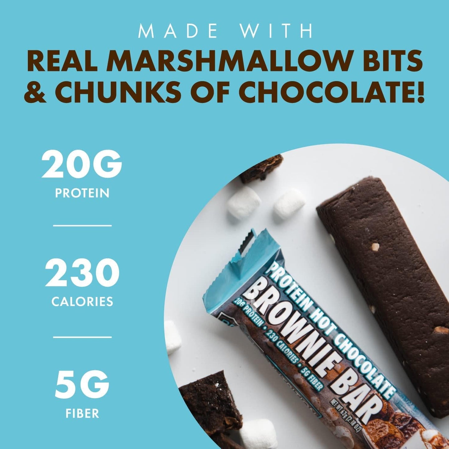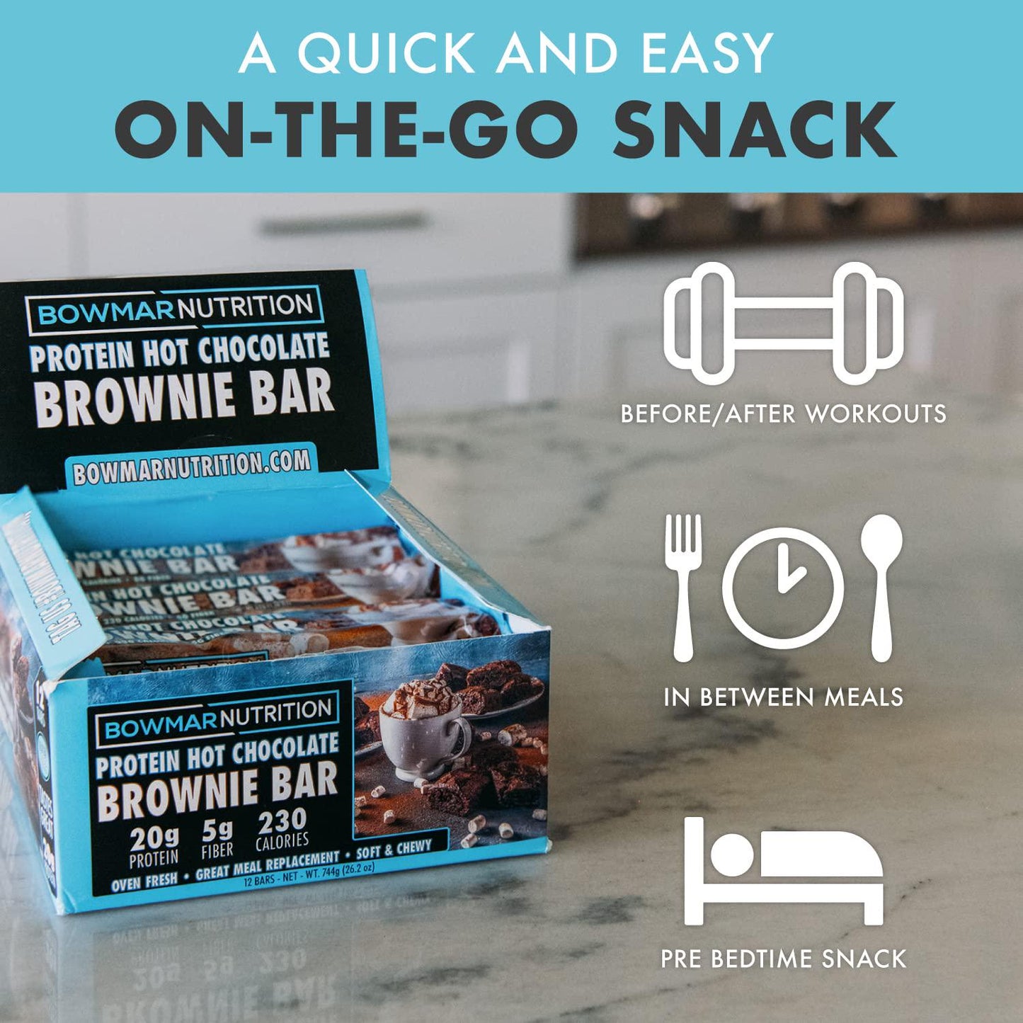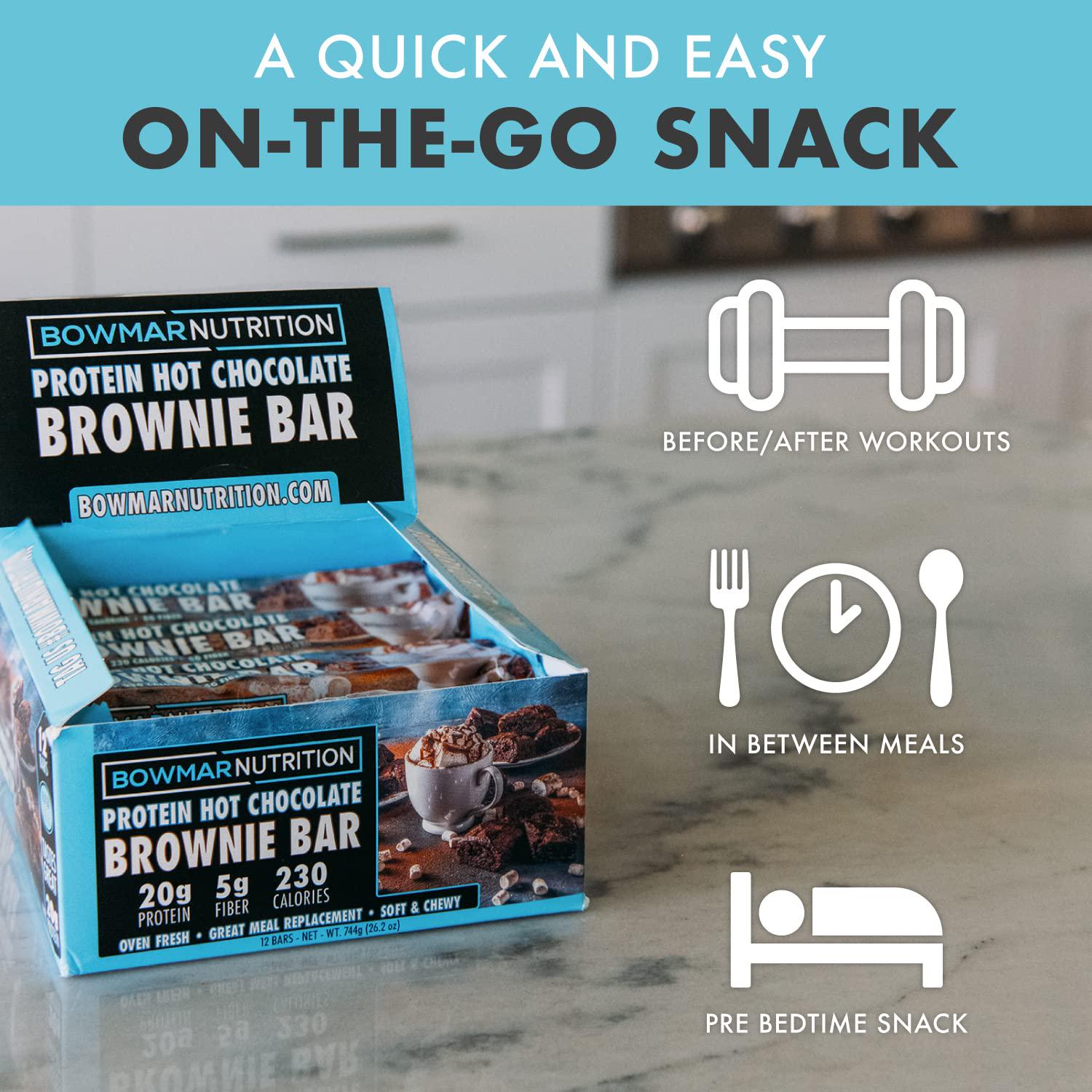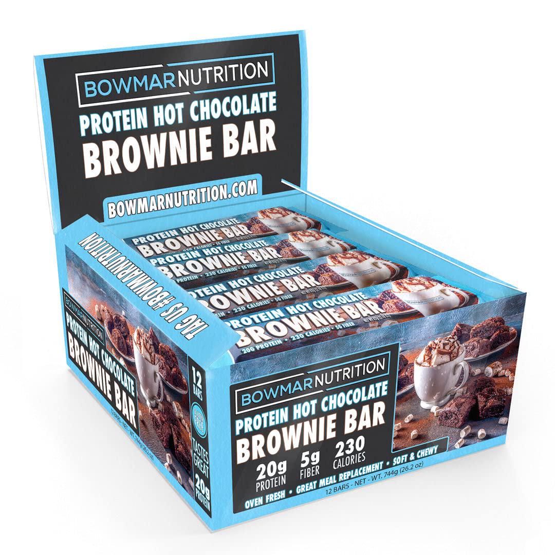 Bowmar Nutrition Protein Bars, Protein Bars, 20g Of Protein, Soft and Chewy, Box Of 12 (Hot Chocolate Brownie)