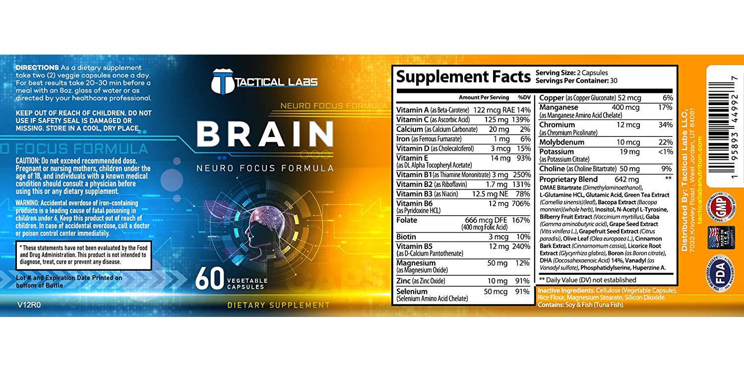Tactical Labs Brain! Built for those who need ultimate focus and energy. Get rid of that brain fog and mid day sleepiness with our proprietary blend.